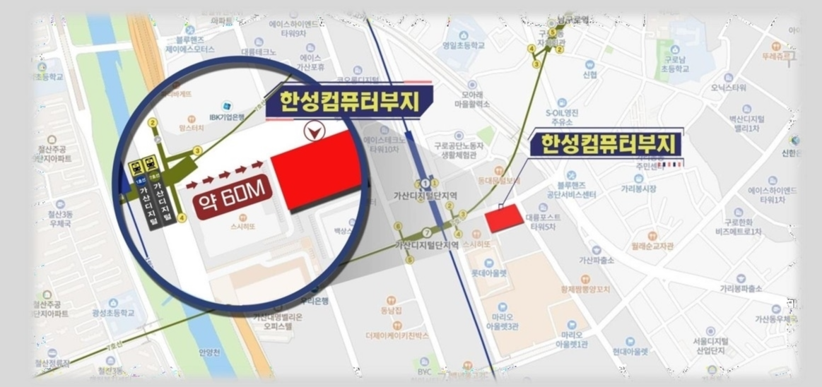 1.7호선 가산디지털단지역 5번 출구 바로 앞에 위치하여 초역세권, 더블역세권이라고 볼 수 있습니다.
