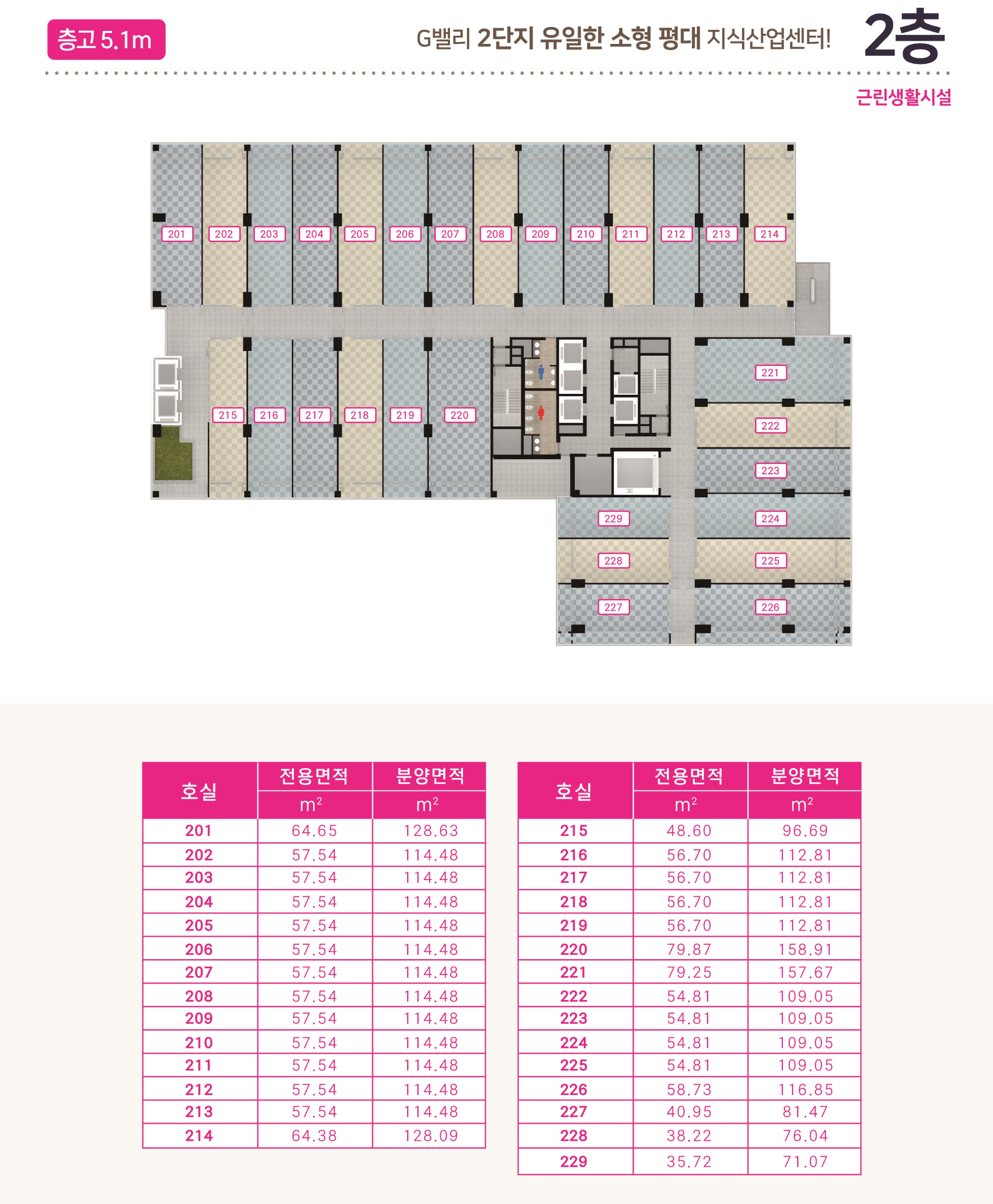 (두 개 호실이 나란히 있어서 전용 20평 이상도 분양 가능합니다.)