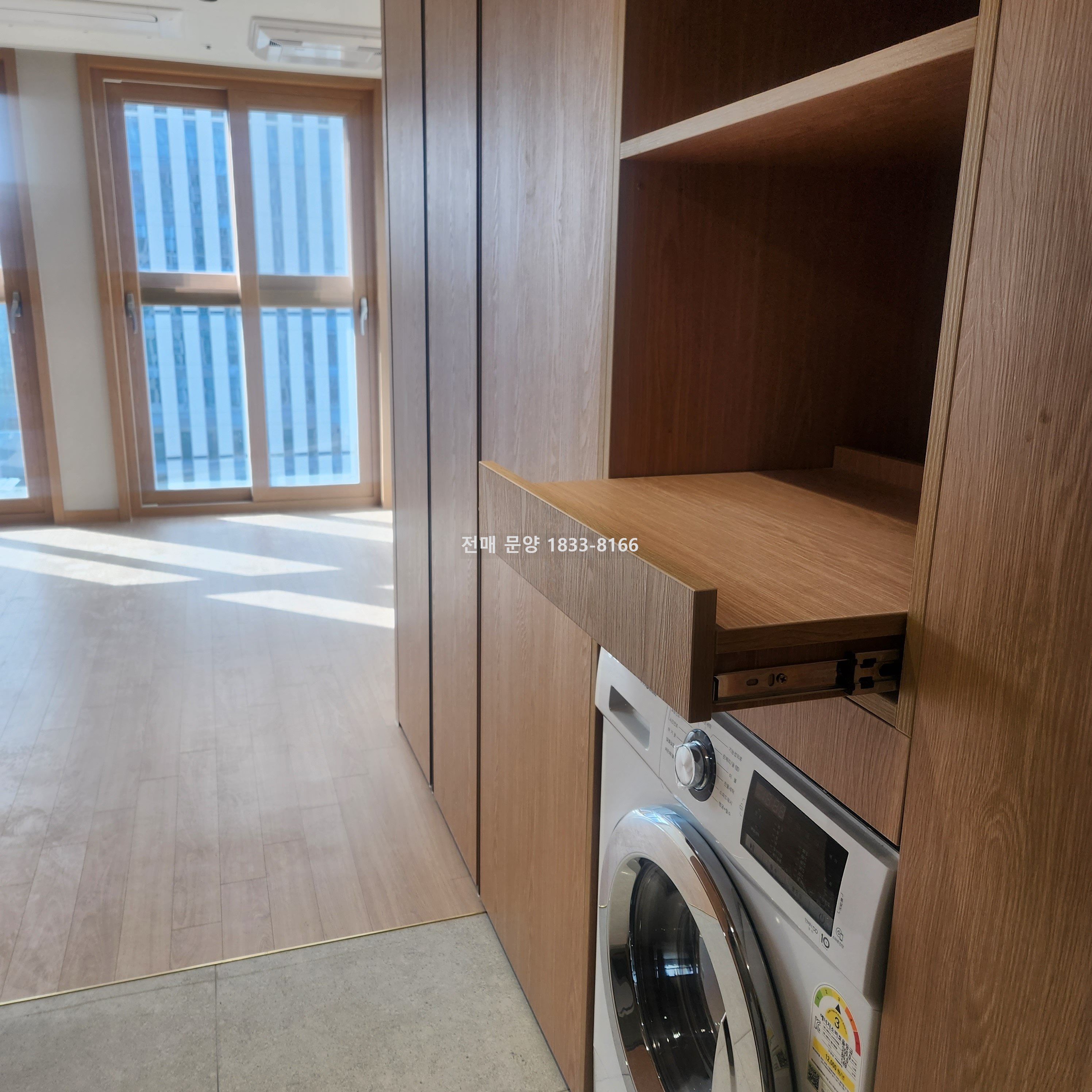 옵션 : 빌트인 가전 세탁기 (세탁+건조기 일체형), 빌트인 냉동냉장고, 2구 인덕션, 붙박이장, 빌트인 수납장, 건식 파우더 겸용 하부장 세면대 등
