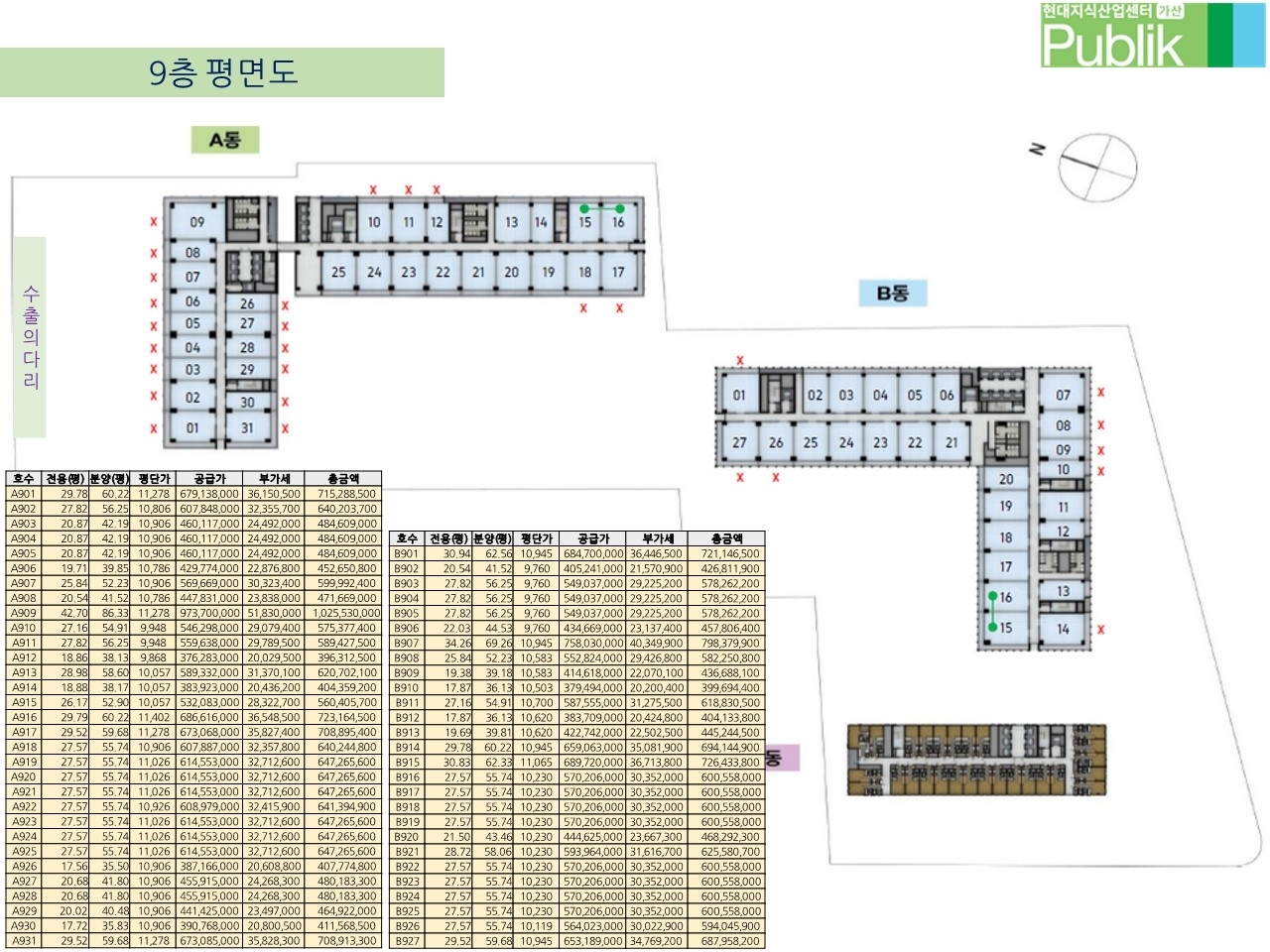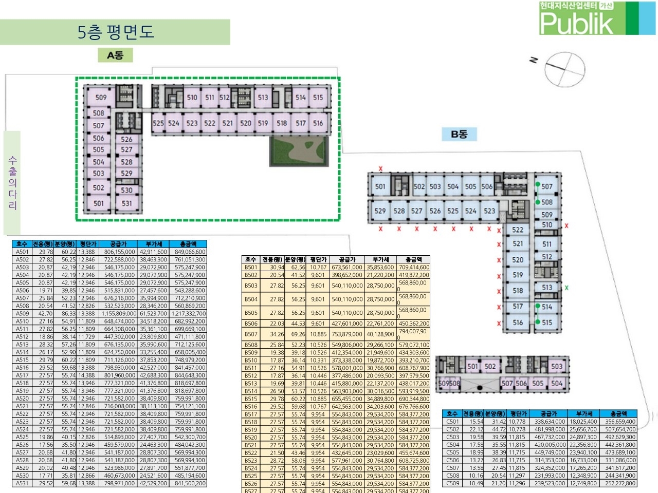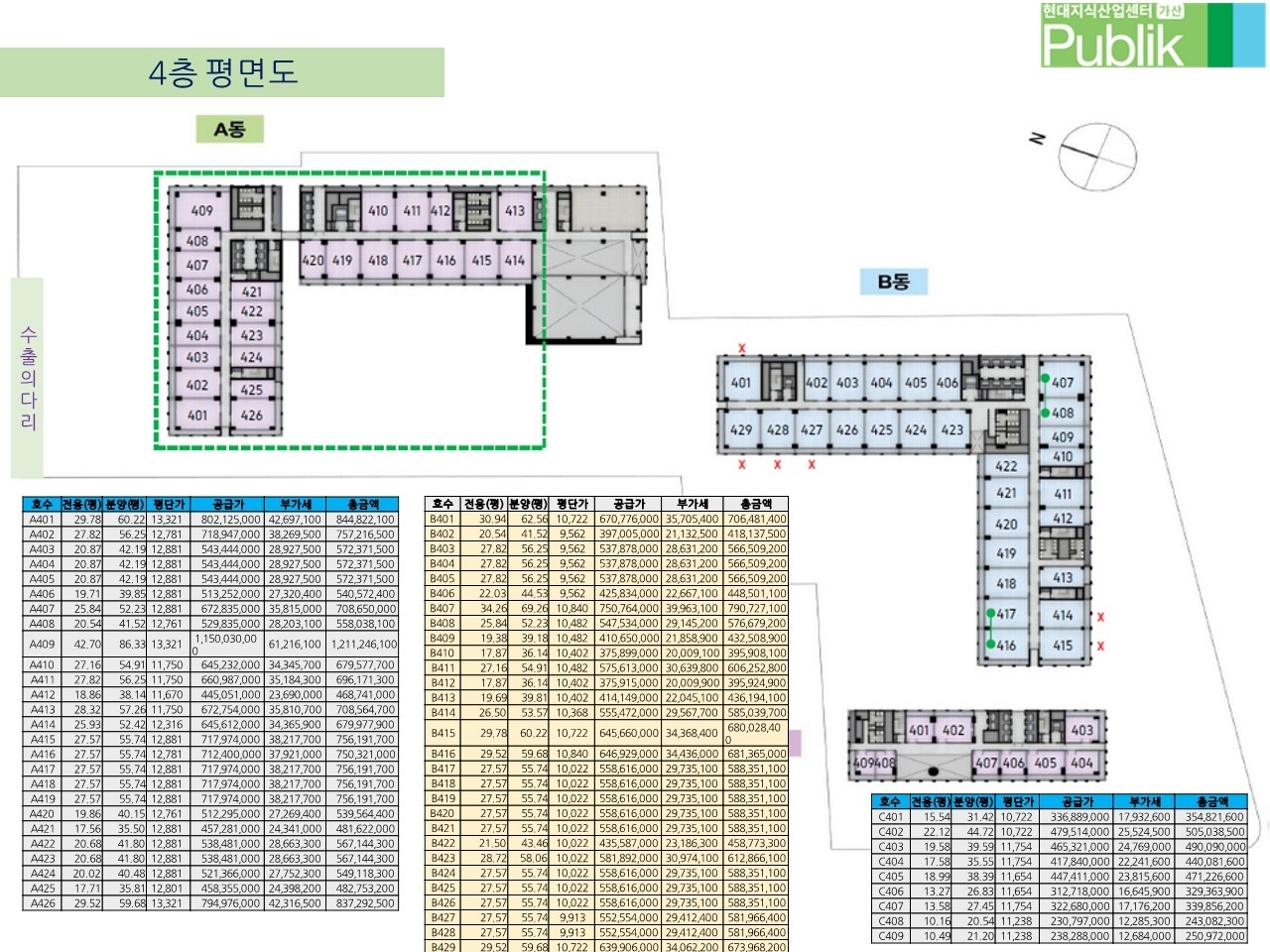 층과 호실 위치에 따라서 평당 가격이 다릅니다~