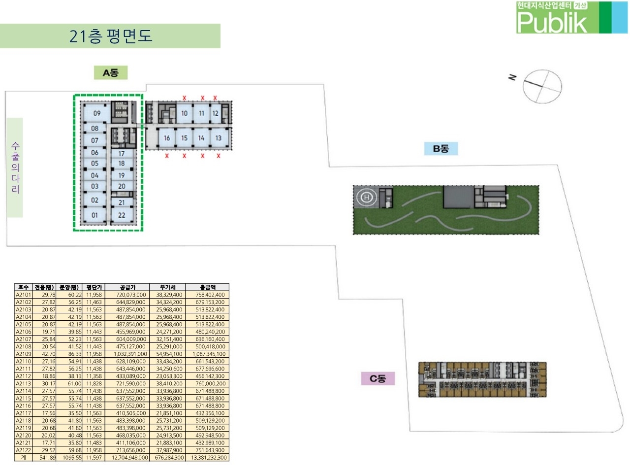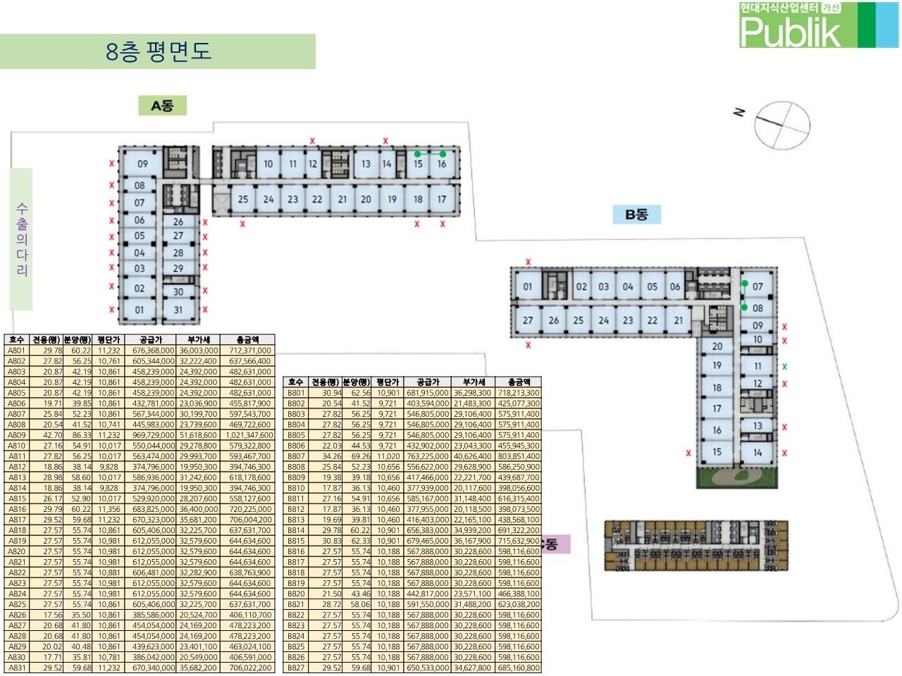 층과 호실 위치에 따라서 평당 가격이 다릅니다~