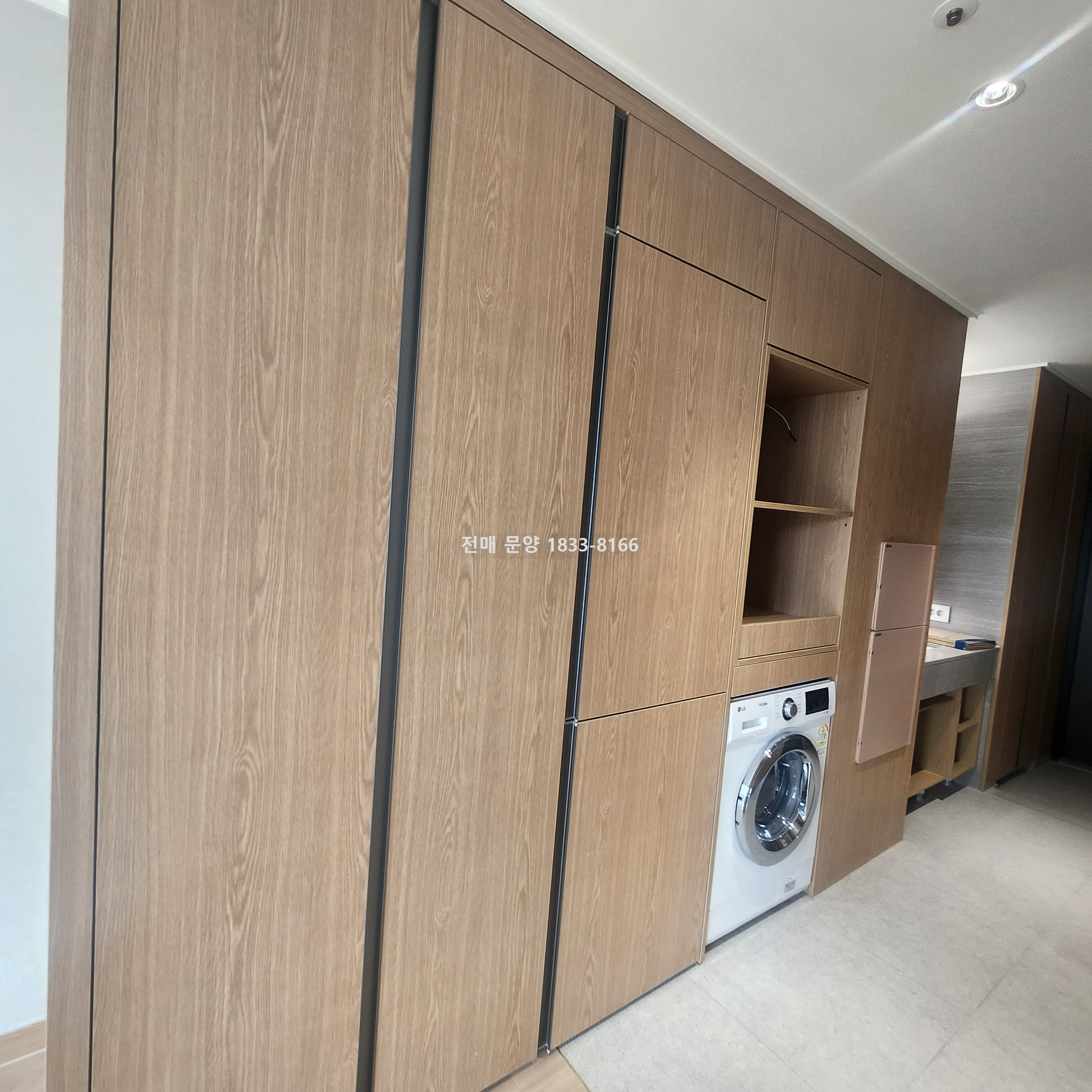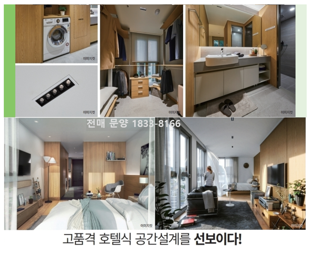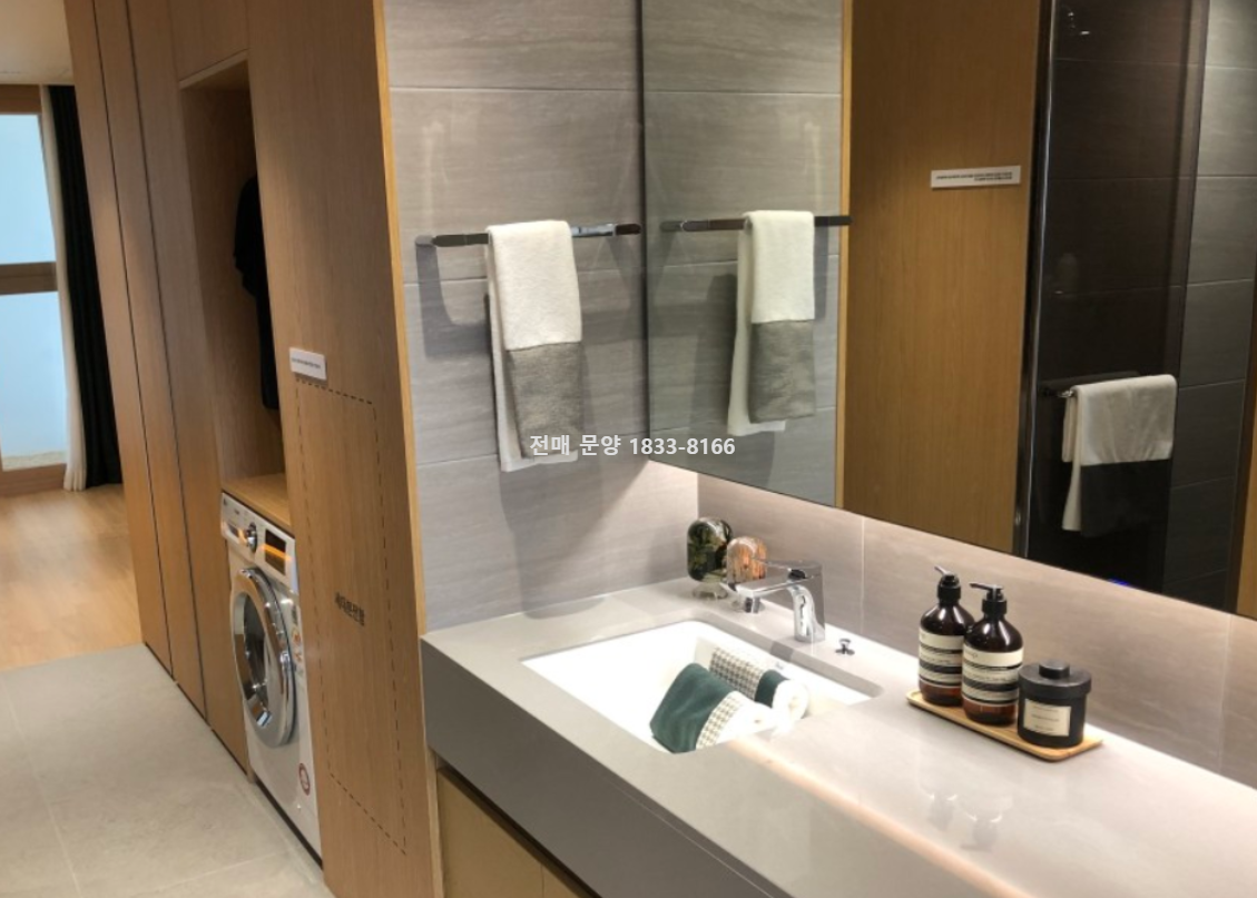 옵션 : 빌트인 가전 세탁기 (세탁+건조기 일체형), 빌트인 냉동냉장고, 2구 인덕션, 붙박이장, 빌트인 수납장, 건식 파우더 겸용 하부장 세면대 등