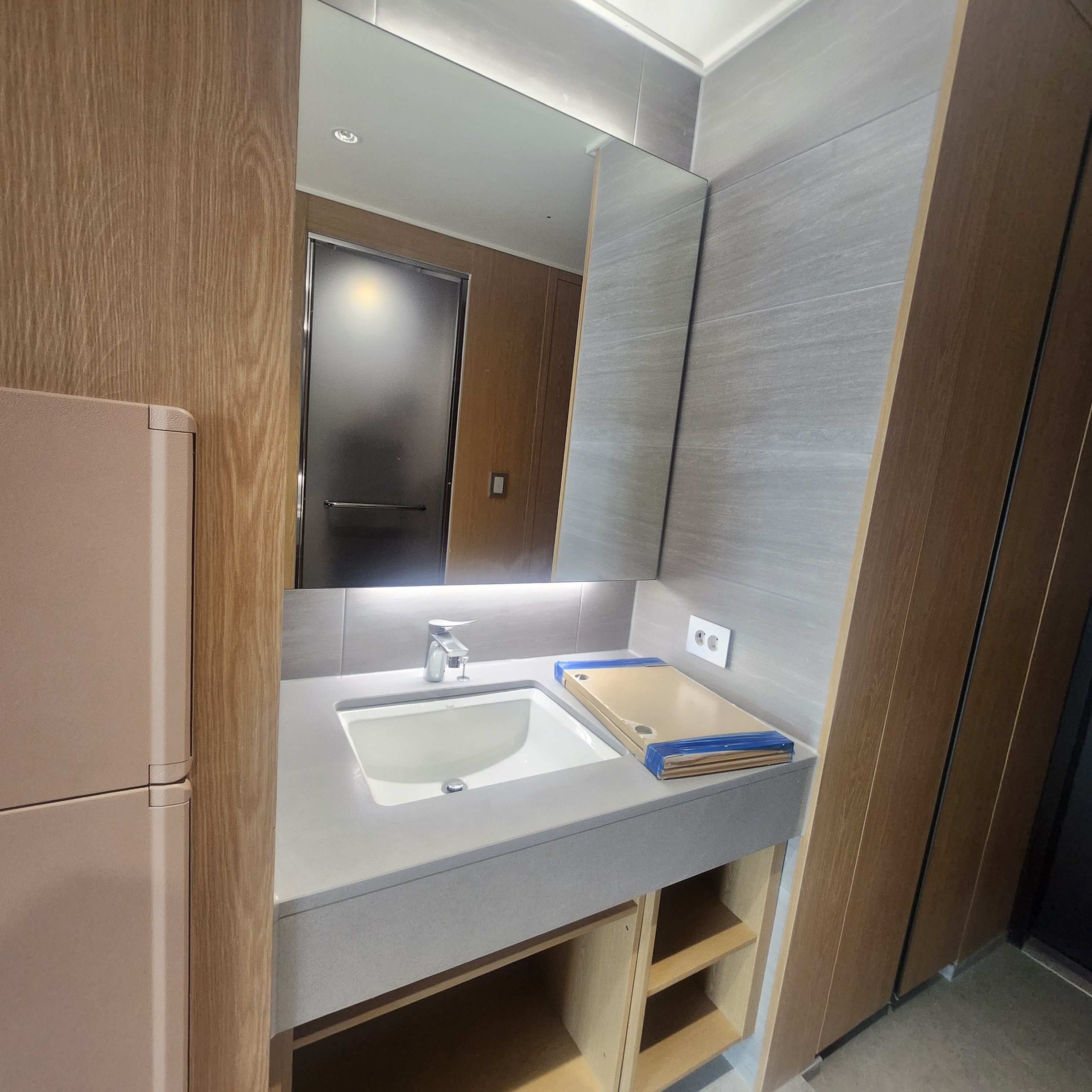 세면대 (파우더룸) 이 외부에 노출되어 있습니다.