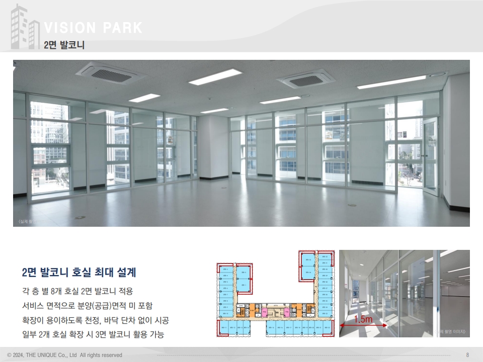 각 층 별 8개 호실 기본 2면 발코니 적용