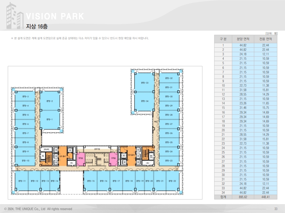 1개 층 분양면적 895.62평 / 전용 448.41평입니다