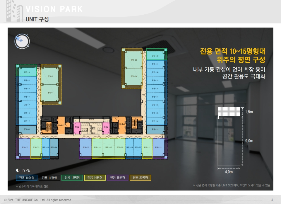건물의 컨디션과 호실의 위치, 구조 파악하고, 필요한 면적을