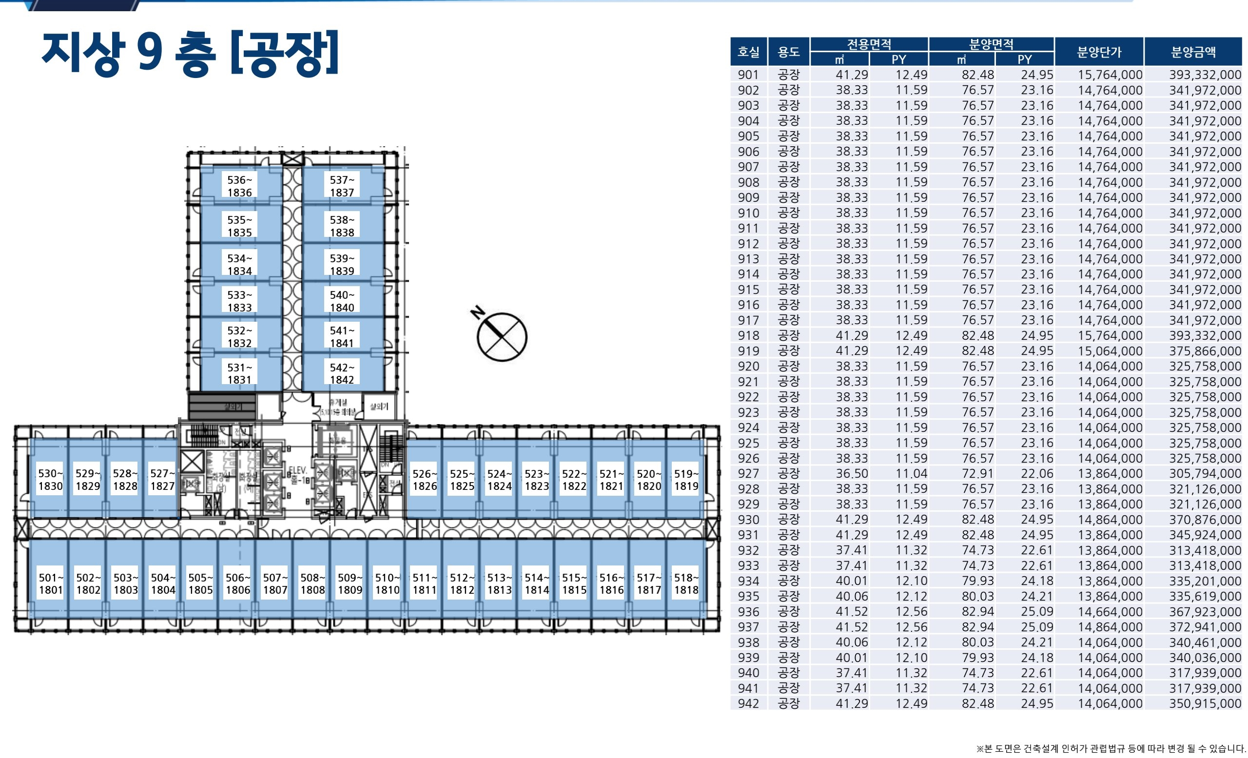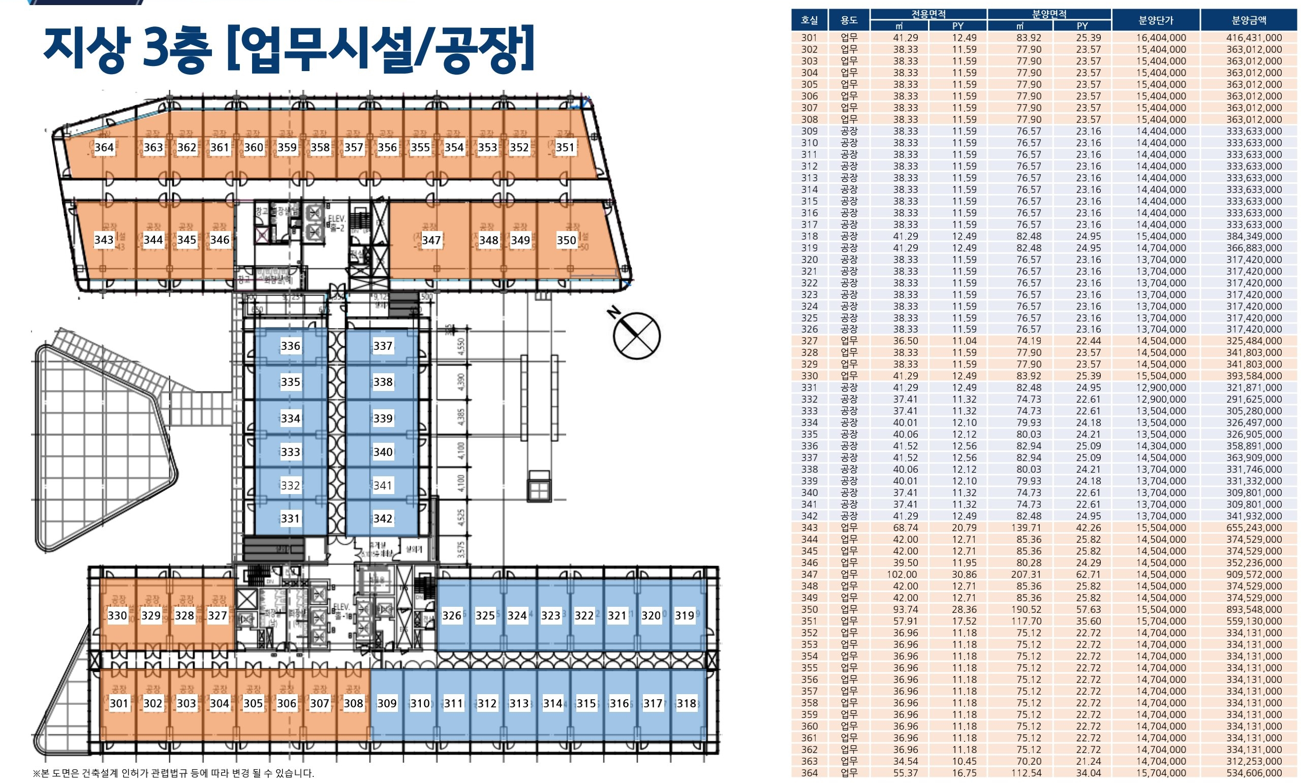 13층 [공장] 전용 11.59평 / 분양 23.16평 평단가 15,134,000원 분양금액 350,542,000원