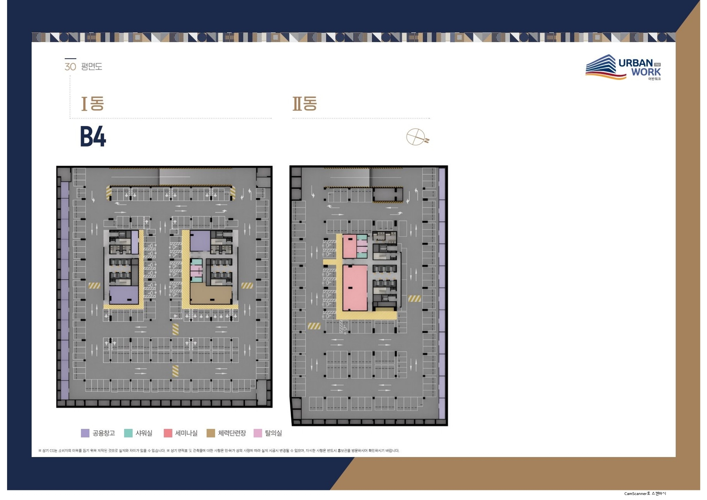 지하 4층에는 체력 단련장과 샤워실, 탈의실, 세미나실을 배치 예정 중에 있습니다