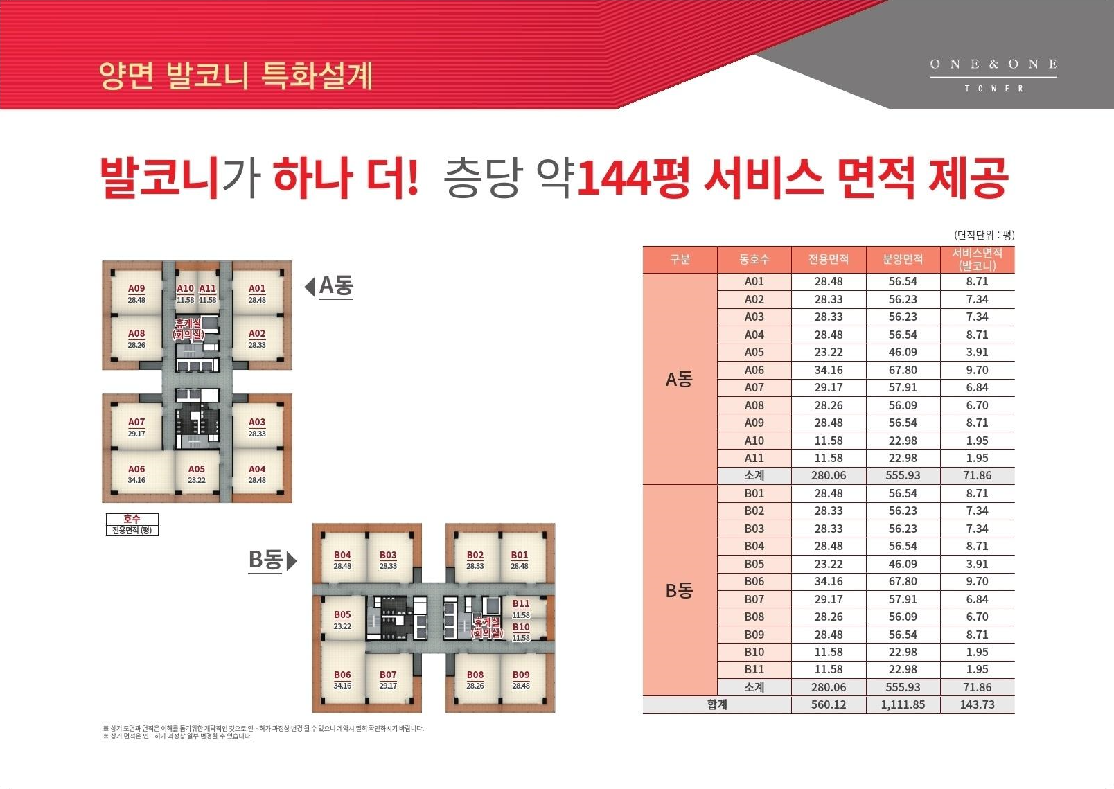 A동, B동 전층을 분양받으신다면 총 전용 평수 560.12평 + 서비스 면적 144평을 포함해 700평 넘게 사용하시게 되는 겁니다.