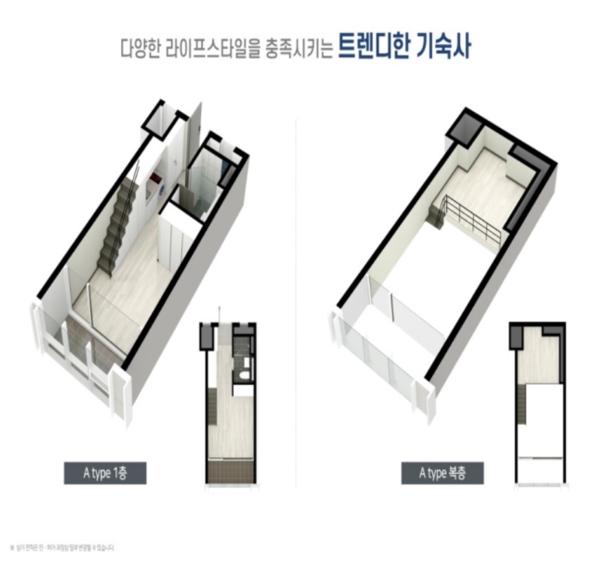 18층[기숙사] 전용7.16평 / 분양14.32평 복층 2.8평 공급가격 180,830,000원(vat별도) 안양천뷰 - 무피