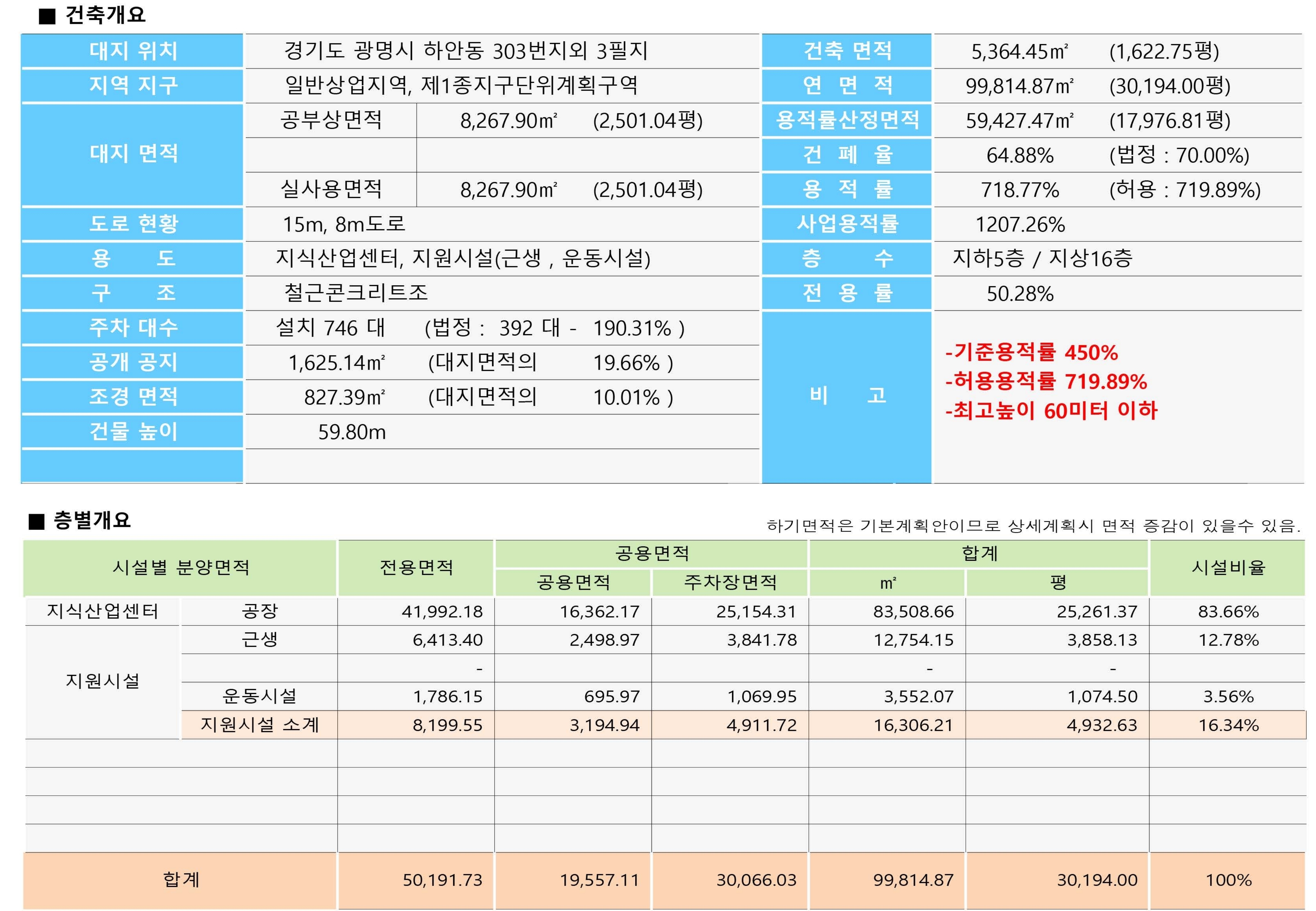 지하5층~지상16층으로 연면적 3만평의 규모인 지식산업센터와 지원시설(운동시설과 근린생활시설)로 구성되어 공사를 시작했습니다.