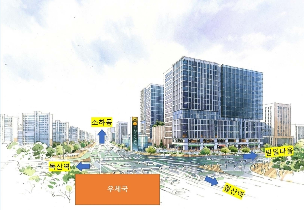 우체국사거리역(신설예정) 도보1분, 인천지하철2호선 독산연장선(예정)으로 역세권의 혜택을 누릴수 있습니다. 광명우체국사거리 이면도로에 위치하고 있어 부지 3면이 도로에 인접해 있습니다.