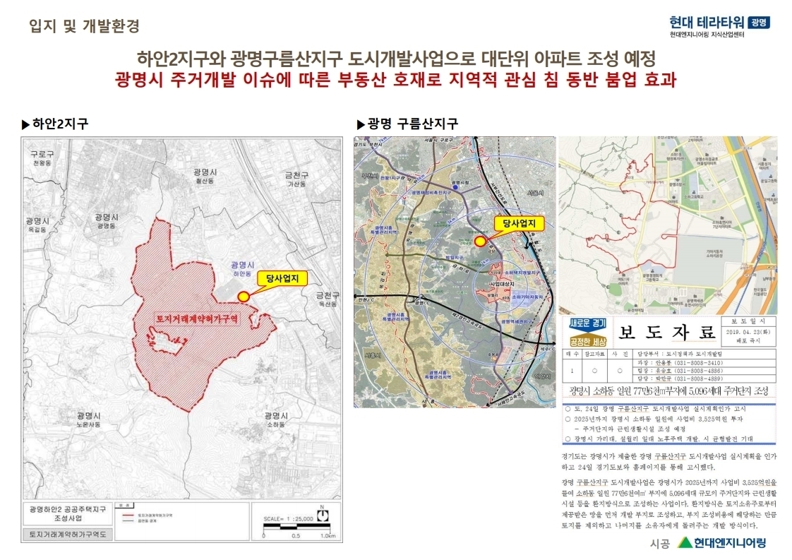 광명현대테라타워가 하안동우체국사거리에 착공시작하였고, 분양도 시작하였습니다.