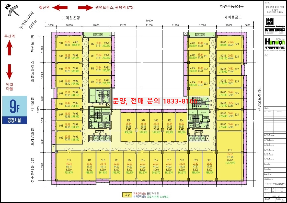 안녕하세요. 광명 현대테라타워 지식산업센터와 상가 지하창고 운동시설 등 시행사보유분이 있어서 호실을 안내해 드리고자 합니다. 광명 현대테라타워는 2020년 분양했던 현장으로 현재 준공되어 많은 기업들이 입주한 상황입니다. 2020년도 분양했던 가격보다 조금 할인된 가격으로 분양하며, 호실이 많지는 않지만, 상가부터 지원시설, 창고, 지식산업센터 등 다양하며 조금씩 남아있는 상황입니다. 사옥이전 계획이 있으시다면, 평단가 800만 원대로 저렴하게 분양받으실 수 있겠습니다.