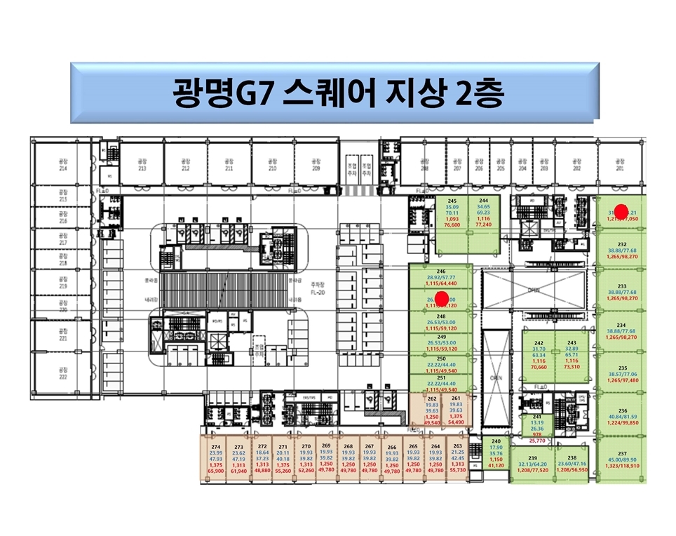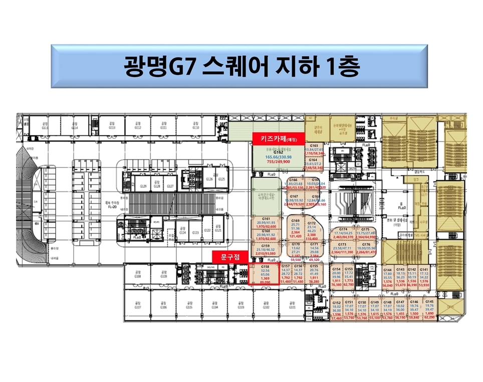 지상 1층에는 많은 근린생활시설이 있습니다. 독점 자리인 두 개의 편의점과 세 개의 약국, 두 개의 부동산이 있으며, 그 외 베이커리나 카페, 은행, 식당들이 입점할 수 있겠습니다. 3층에는 중앙대 건강검진센터와 2층에 반개층 이상이 메디컬 존으로 구성되어 있어서 1층에 약국 자리 또한 큰 메리트가 있다고 보입니다. 그리고 다른 지식산업센터와는 다르게 광명G타워는 평일과 주말 상권도 가능하다고 봅니다. 평일 상권은 지식산업센터와 건강검진센터 수요로 북적이며, 주말에는 대형 앵커시설을 이용하는 패밀리 수요로 발 디딜 틈이 없는 1년 365일 주 7일 모두 활발하고 탄탄한 수요를 기대할 수 있을 거 같습니다. 편의점은 이미 계약이 완료된 상태이며, 약국호실, 부동산호실은 몇 호실 안 남았으니, 관심이 있으시다면 서둘러주세요^^