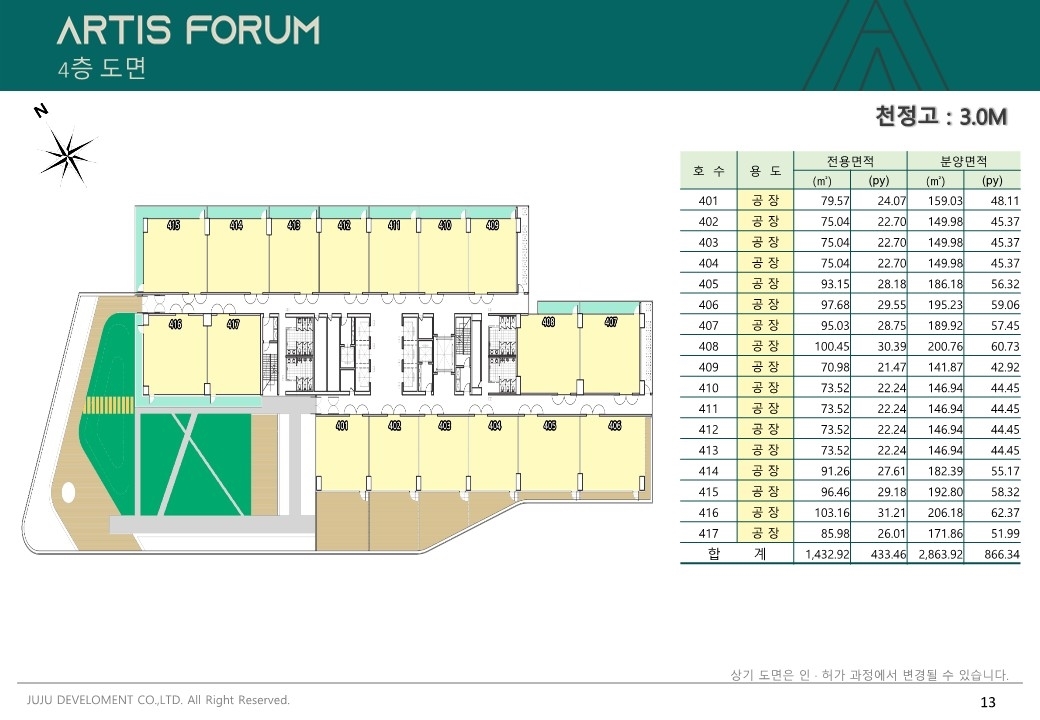 4. 아티스포럼 평면도 입니다. 평수 참고해 주세요