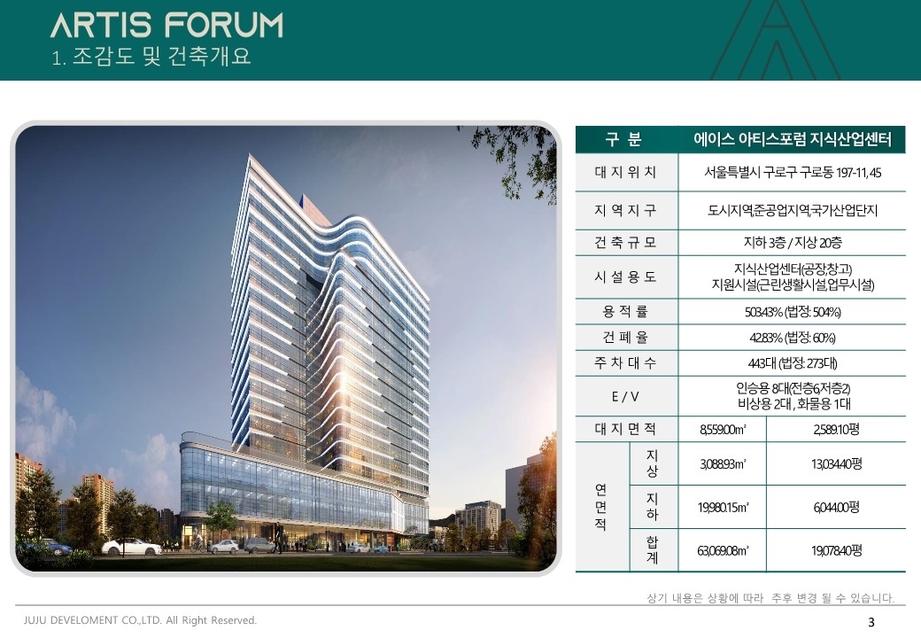 1. 에이스 아티스포럼 지식산업센터 사업개요 입니다.