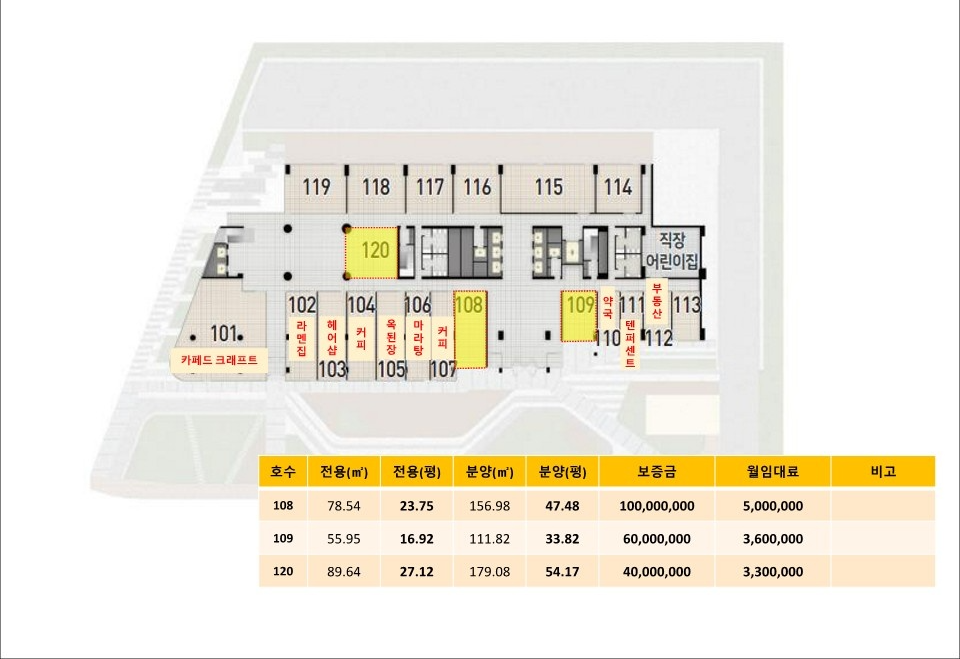 현재 약국과 부동산 카페 음식점, 헤어숍까지 입점하였습니다~