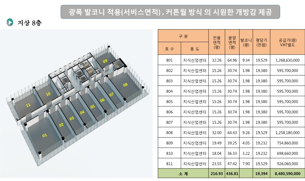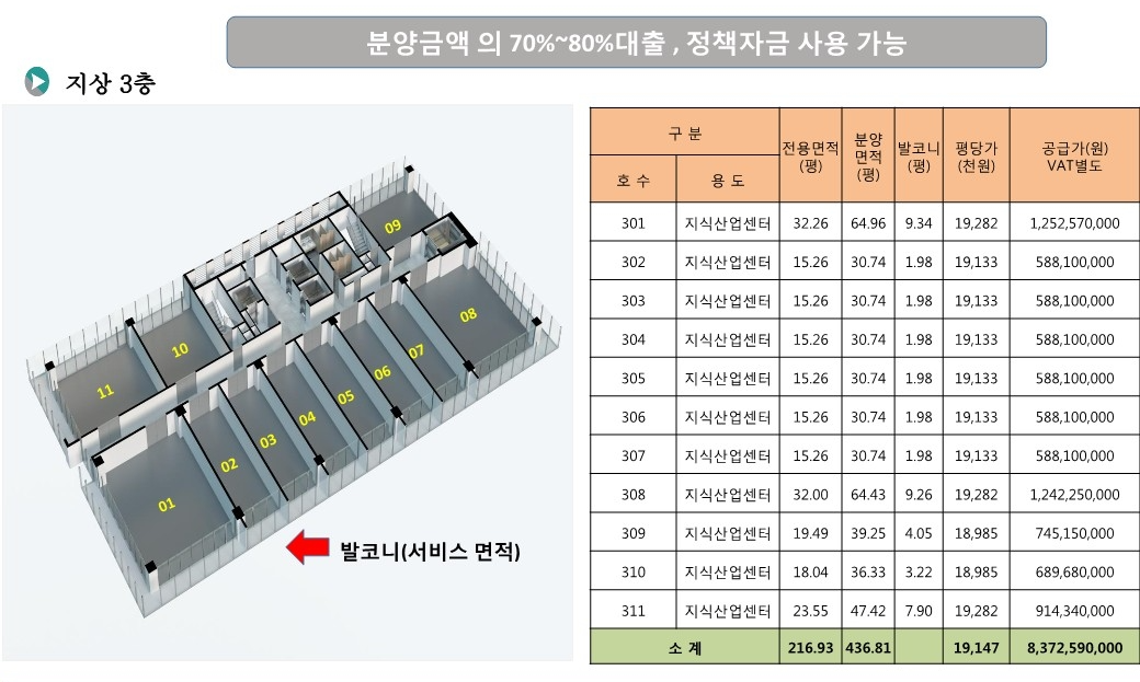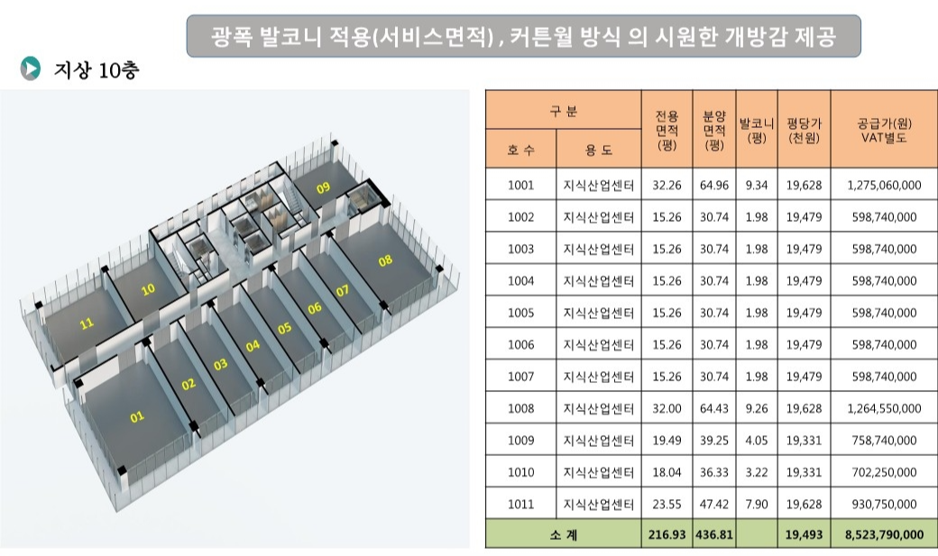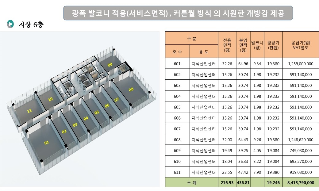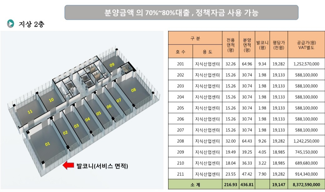 지상2층~지상11층은 업무형 지식산업센터 입니다