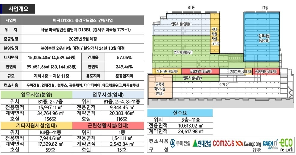 서울시 강서구 마곡산업시설구역 D13BL 업무시설을 신규로 공급하는 PJT이며, 지하4층에서 지상11층의 규모로