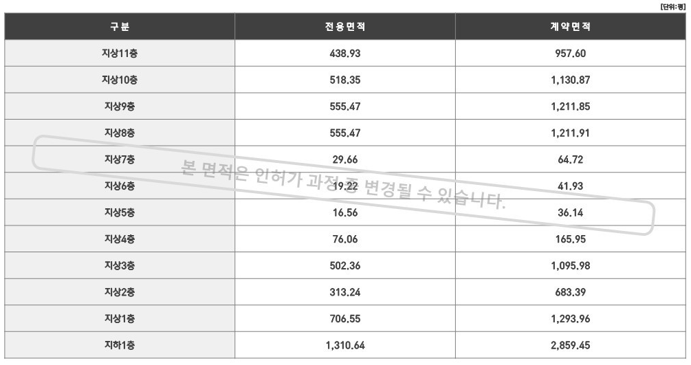 ■ 층별 임대 공급 면적 : 고층부 조망 및 개방감 확보