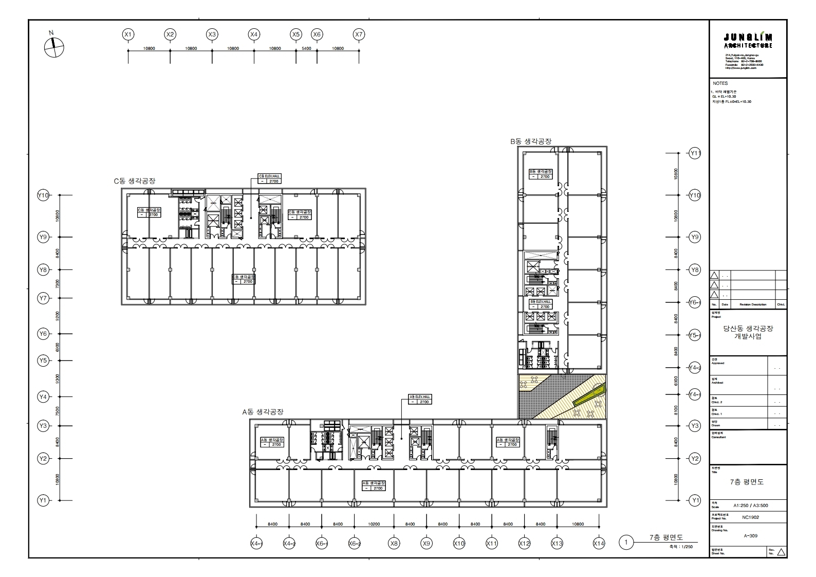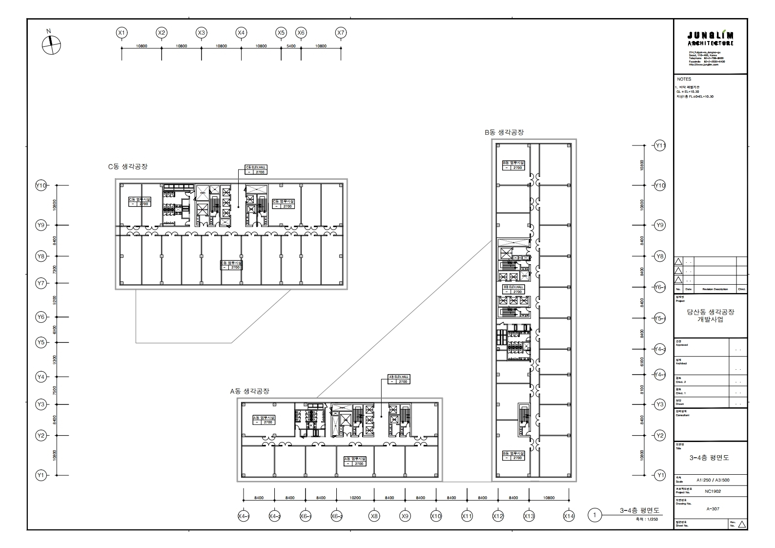 ☞규모: 연면적 3만 평 / A, B, C 세 개 동으로 구성 (공장의 기본 평형은 전용 20평대입니다)