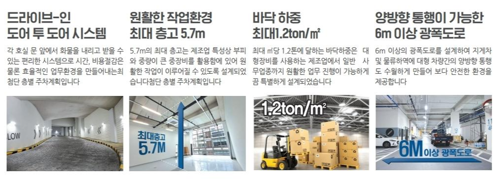 받을 수 있는 편리한 시스템으로 시간, 비용 절감하실수 있으며, 5.7m의 높은 층고로 설계하여 호이스트 설치나