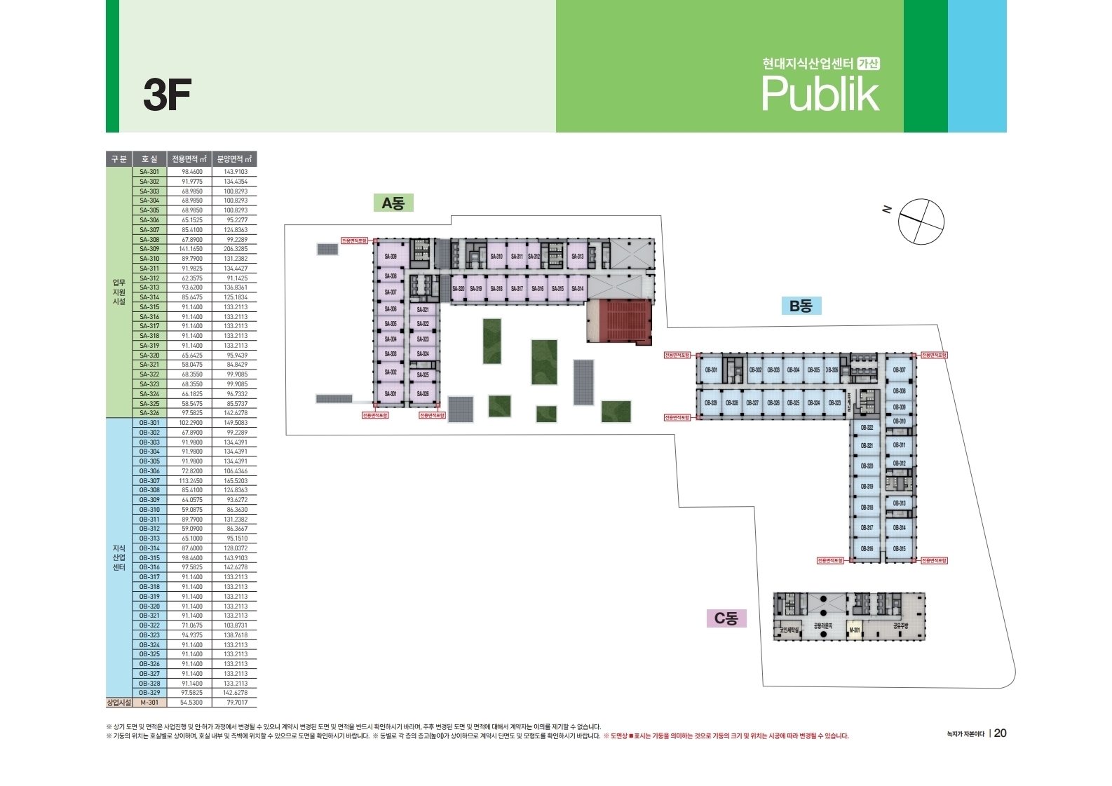 지하3층부터 A동, B동, C동으로 나누어져 있습니다