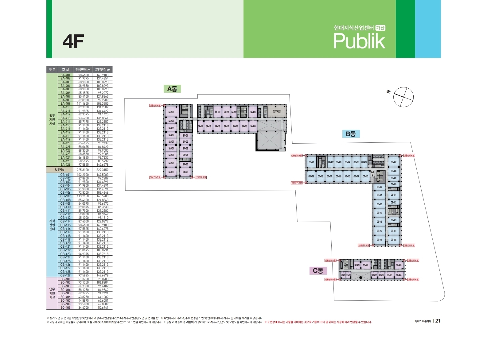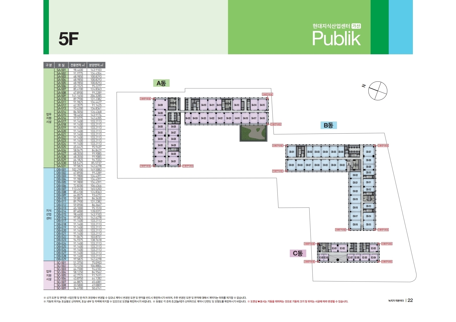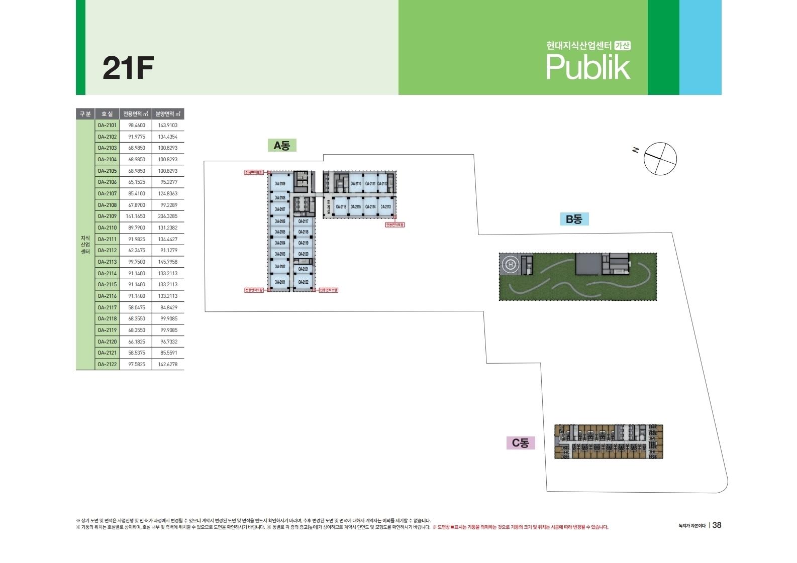 A동 A2101호실부터 A2122호실까지 지식산업센터로
