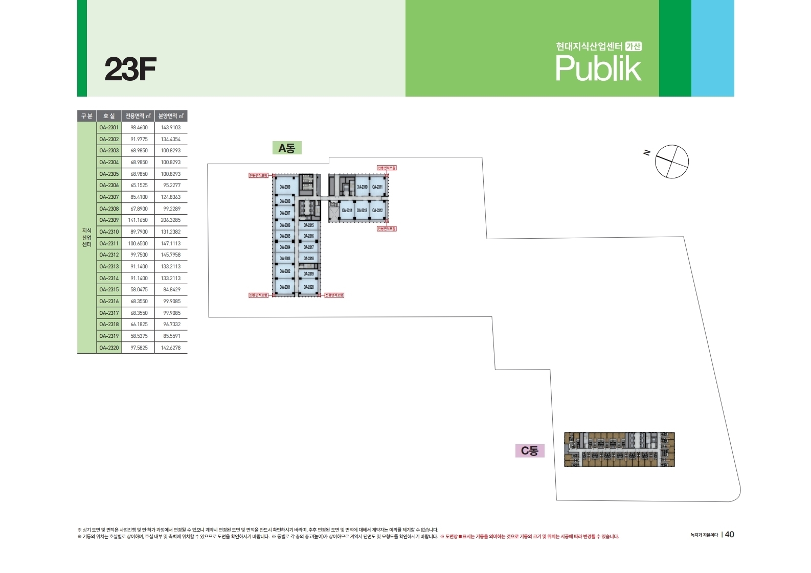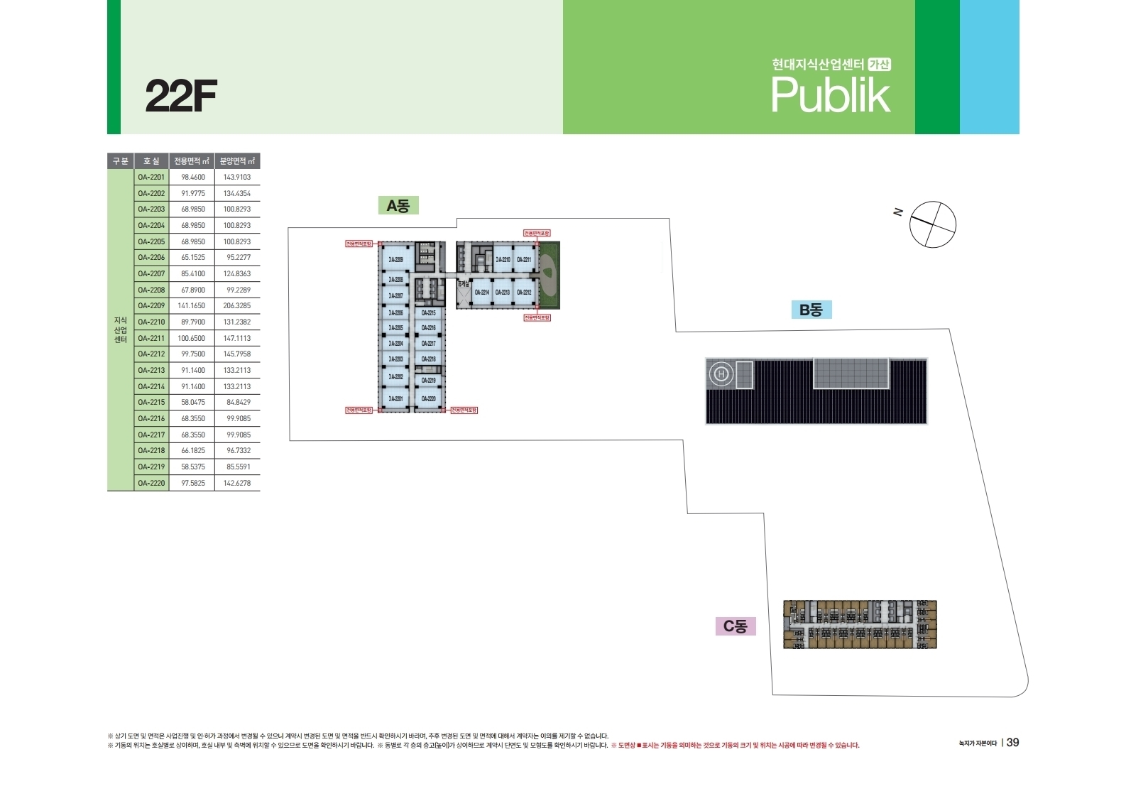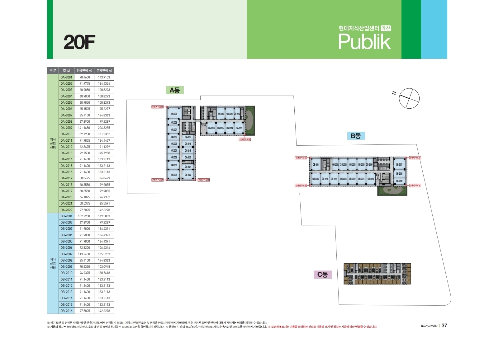 A동 A2101호실부터 A2122호실까지 지식산업센터로