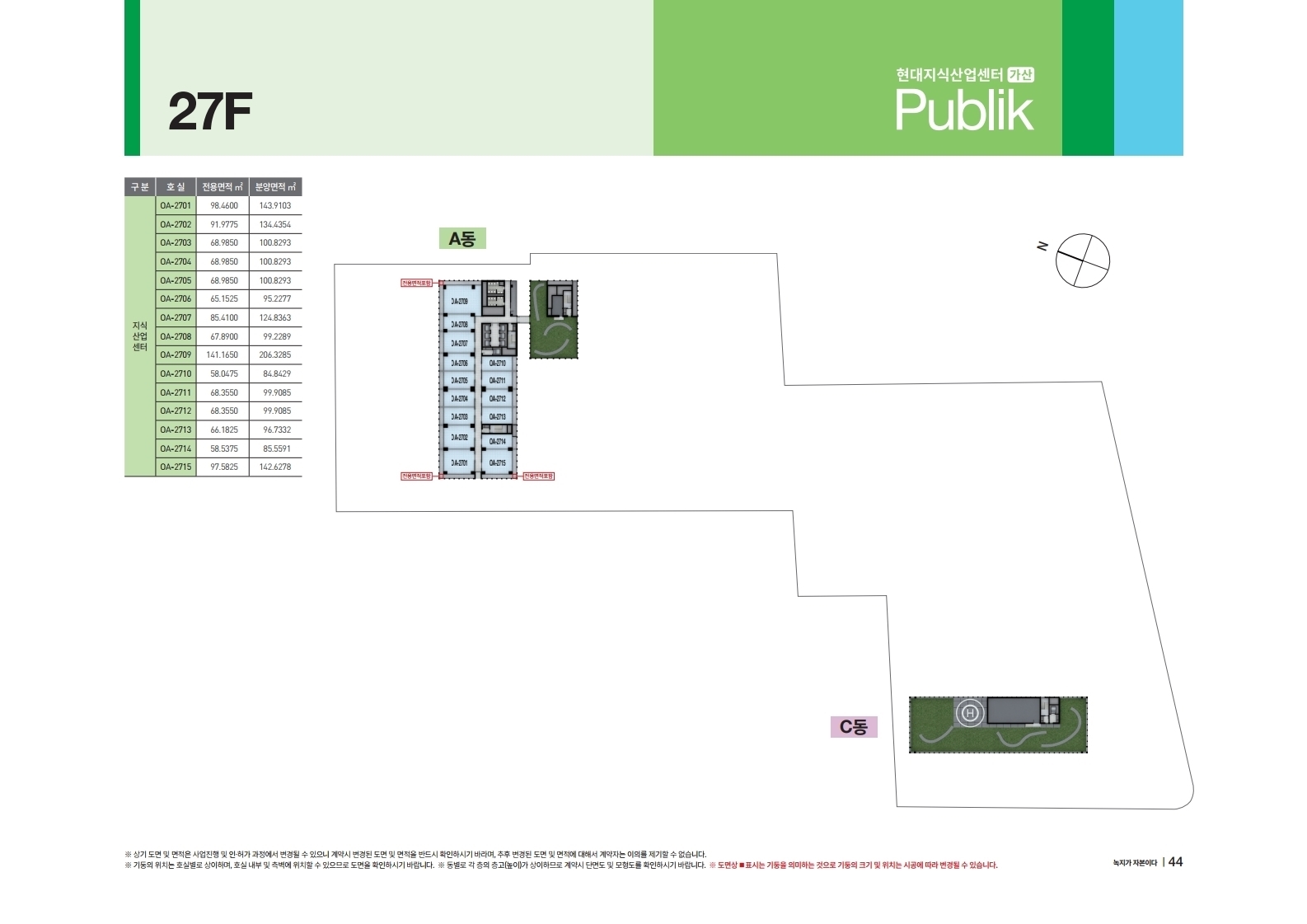 A동 A2701호실부터 A2715호실로 지식산업센터 입니다