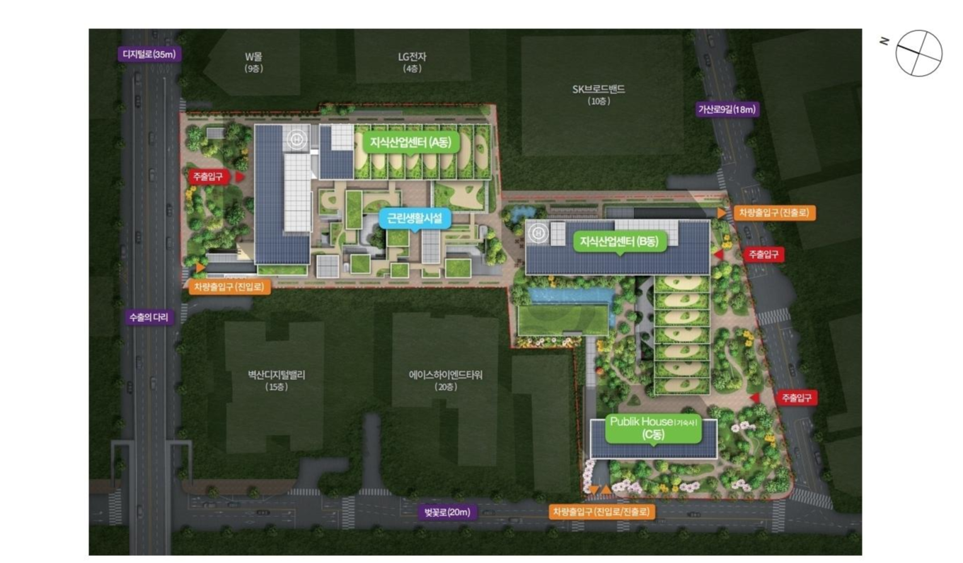 가산퍼블릭은 지하5층부터 지상27층 3개동으로 연면적 7만8천평의 규모로 서울에서 최대 규모를 자랑하고 있습니다.