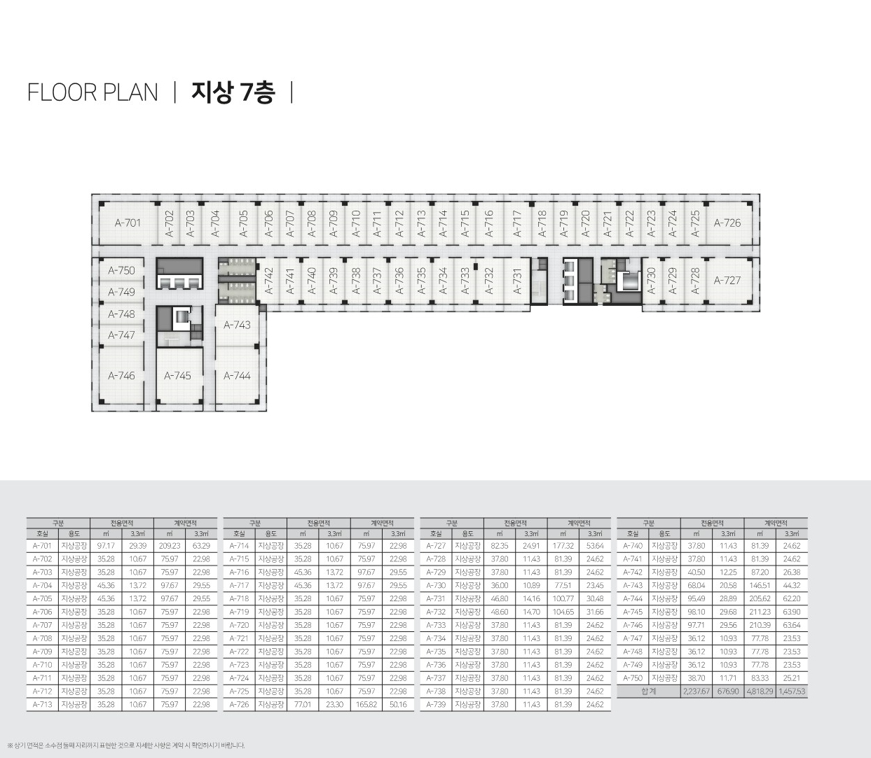 지상층 층고는 4.8m(천장고 3.95m), 업무형 층고는 3.9m(천장고 2.7m)로 시공됩니다