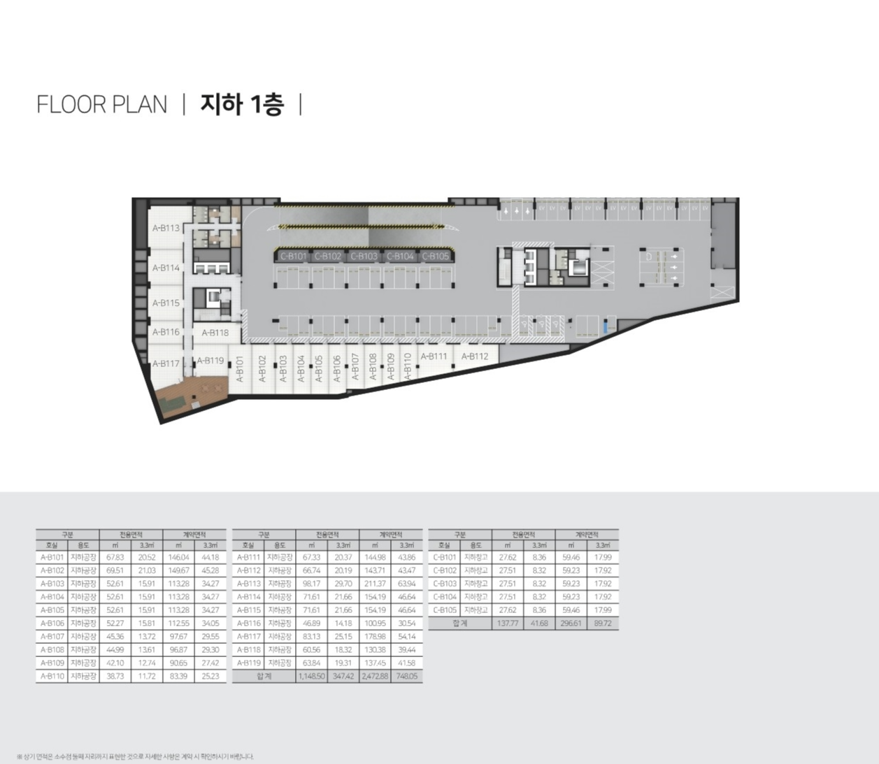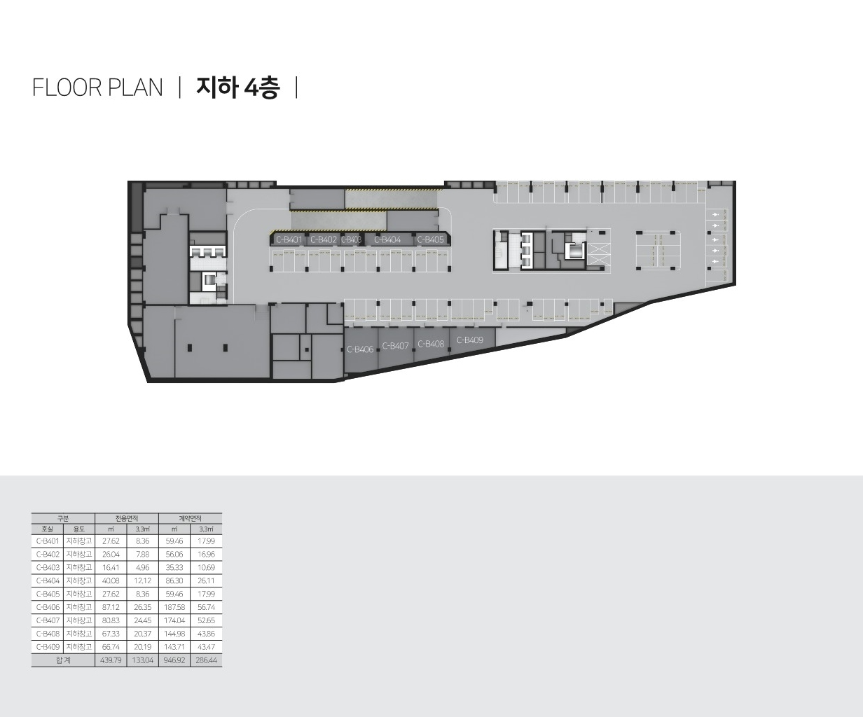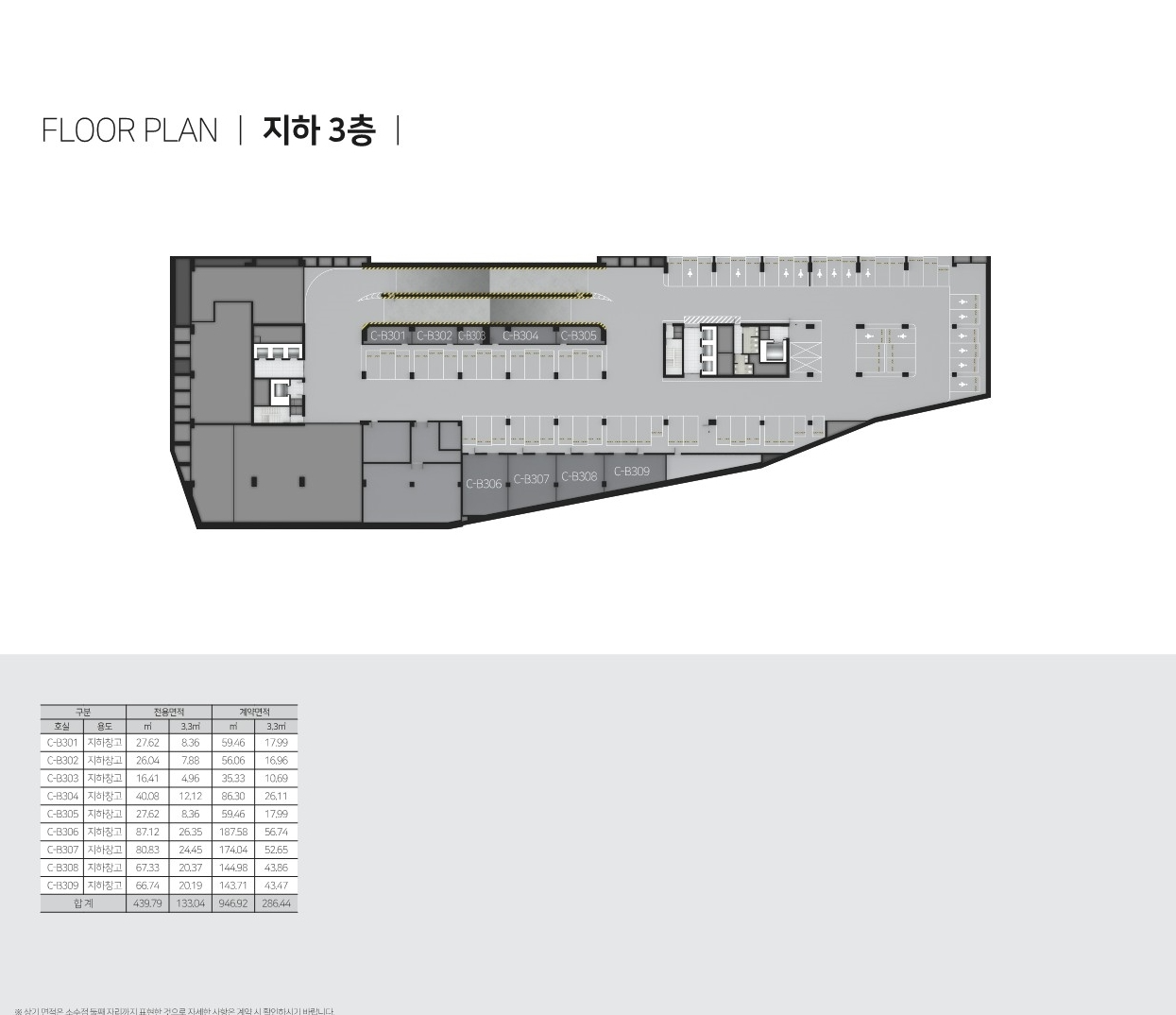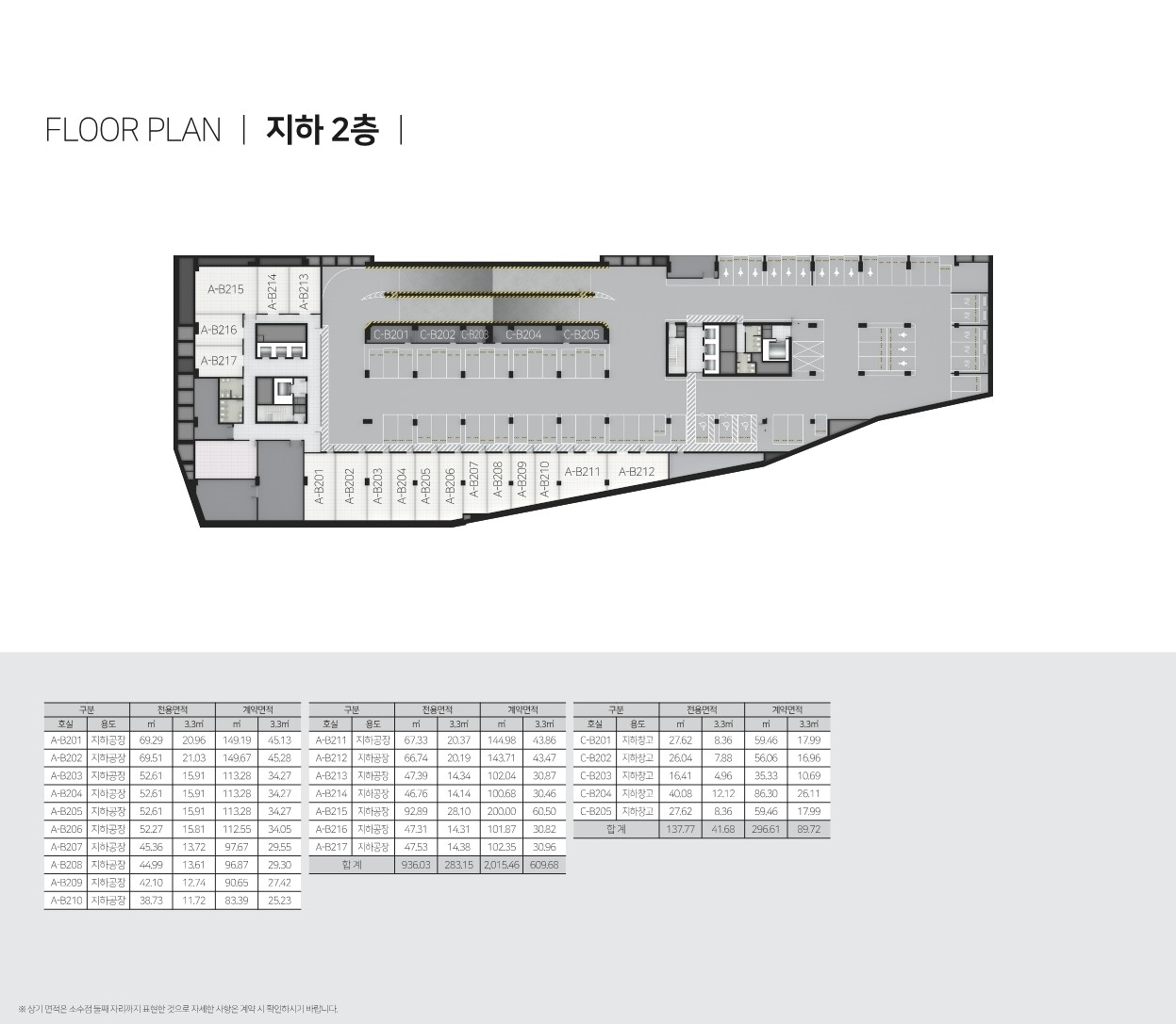 지하 2층과 지하 1층은 주차장과 지하공장, 지하창고로 구성됩니다.
