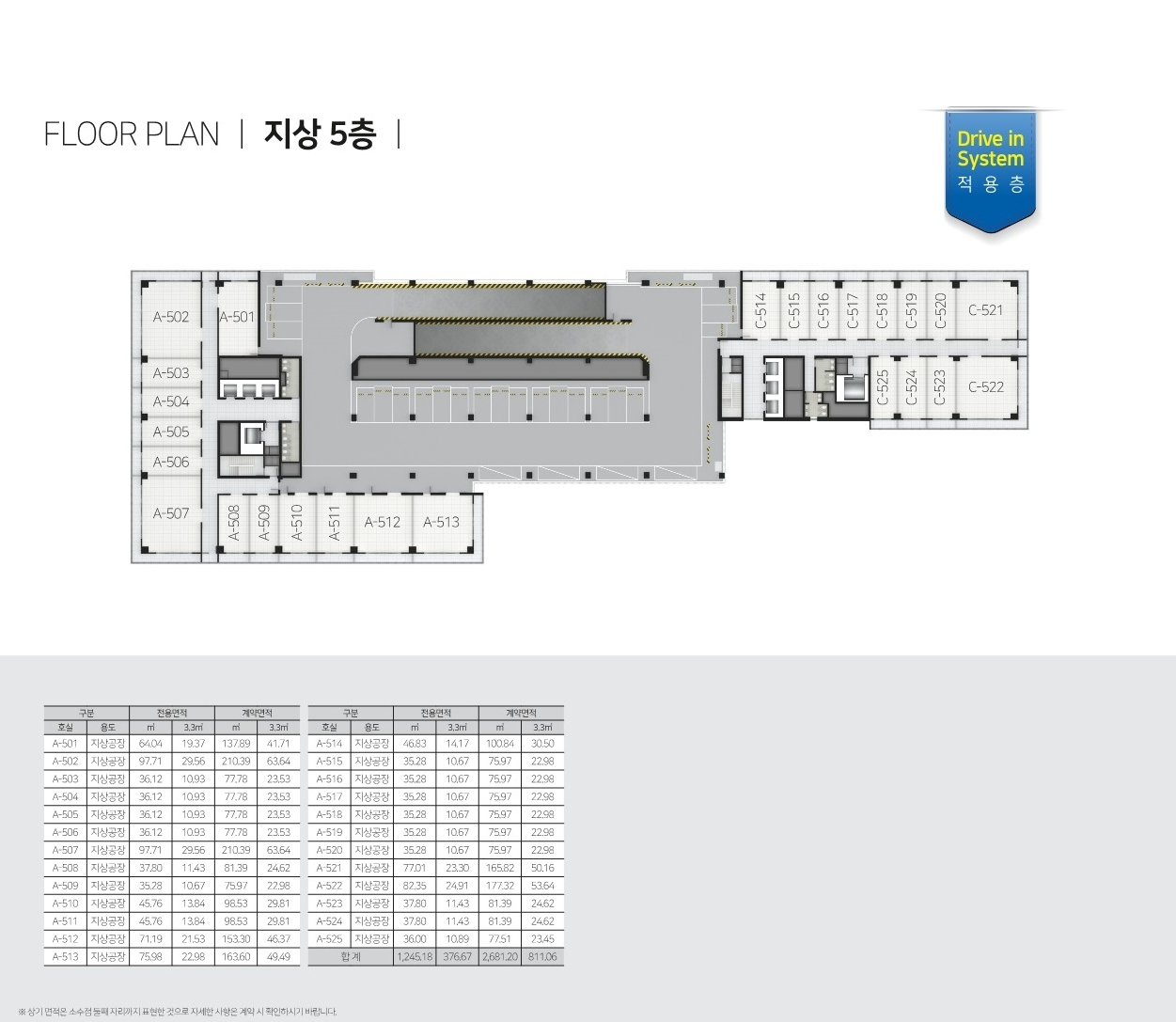 지상 5층은 지상공장, 지상창고로 구성됩니다.