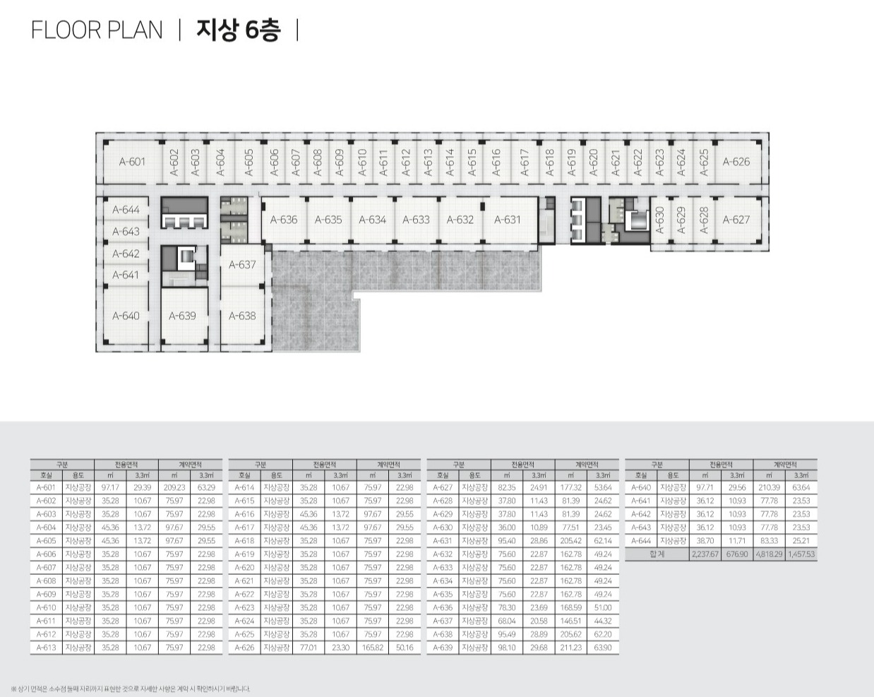 소형부터 대형까지 다양한 면적으로 구성되어 경량 제조형 공장부터 섹션오피스까지 모두 수용이 가능합니다.