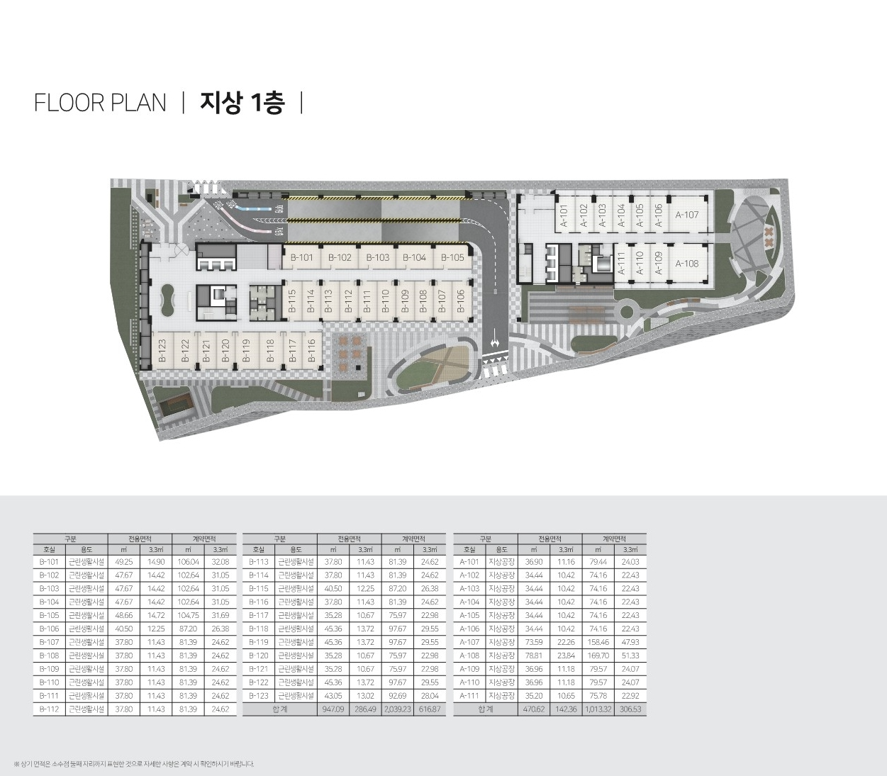 지상 1층은 근생과 지상공장으로 구성됩니다.
