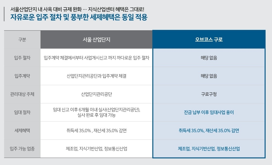현재 서울 내 산업단지 지식산업센터 입주 시 적용되는 입주, 임대 절차에서 자유롭다는 것이 큰 메리트입니다.