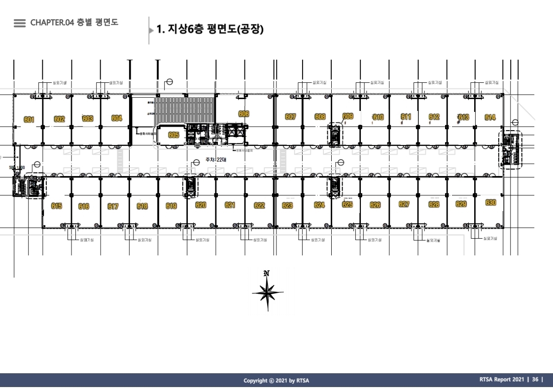6층까지는 드라이브인시스템으로 차량이 사무실 안까지 진입 가능할 수 있도록 호실을 설계하였고