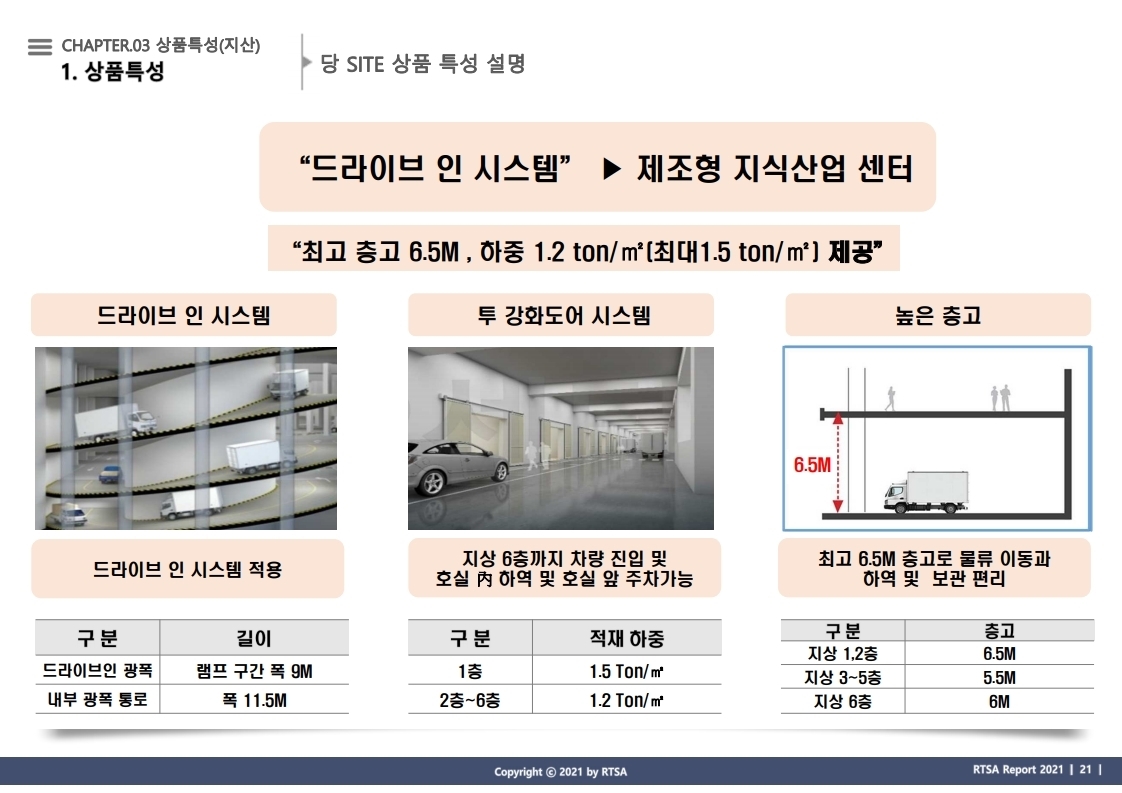 최고 층고는 6.5m, 하중 1.2ton/㎡ (최대 1.5ton/㎡)제공됩니다