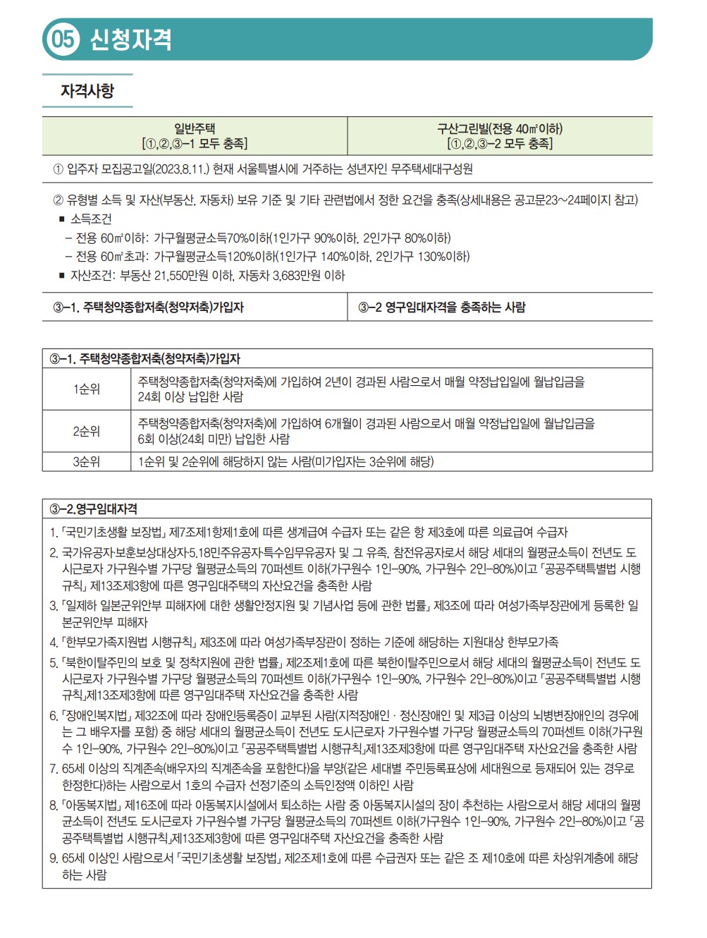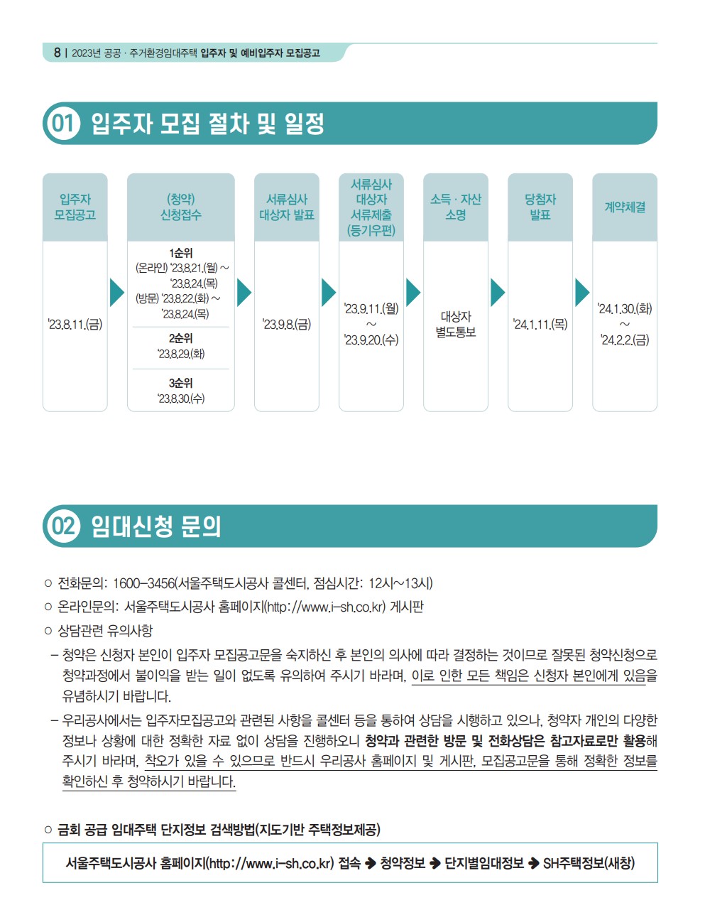 2. 입주자 모집 절차 및 일정, 임대신청 문의 그리고 자격조건입니다